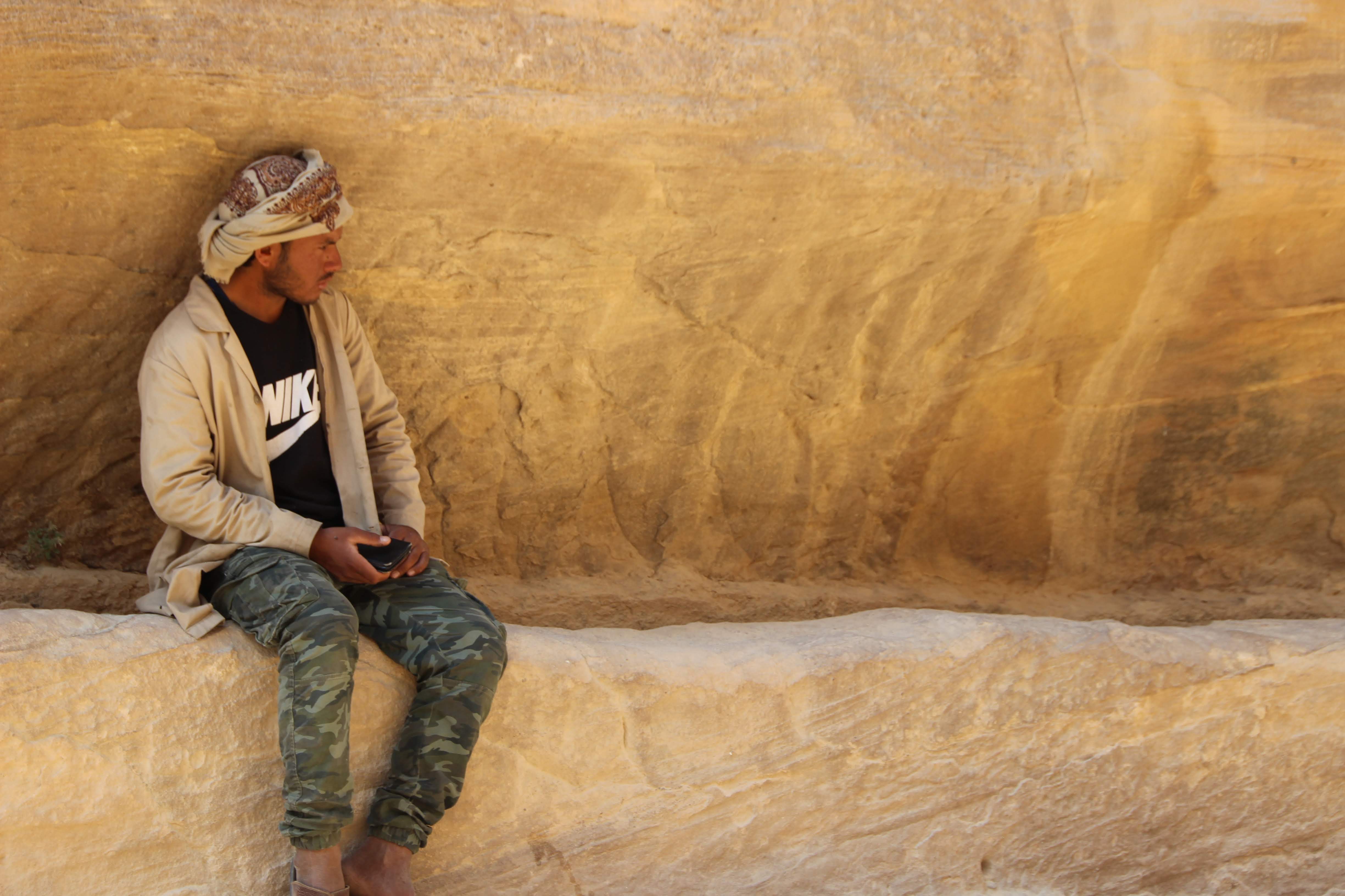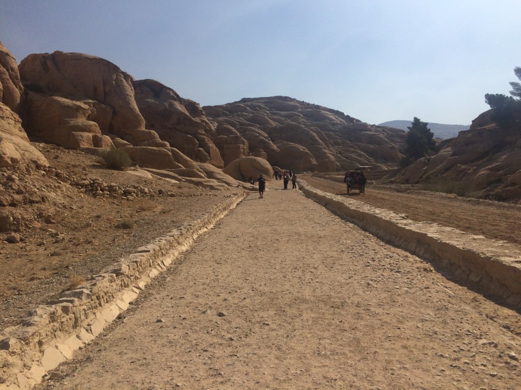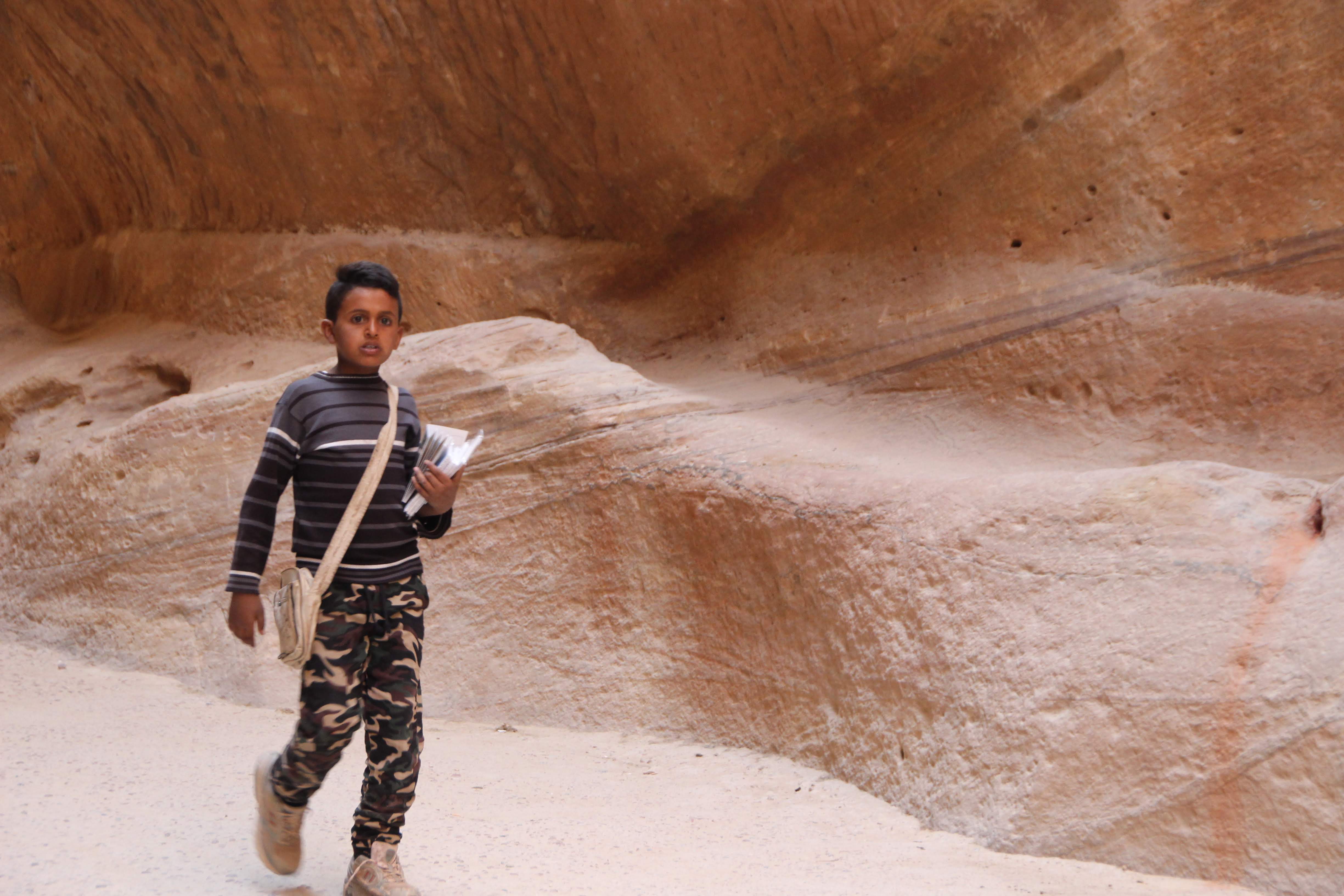 Walking through the Siq gorge, we had to keep our ears listening for horses, donkeys or carriages that would come down the path. The carriages come through quite fast, and tend to have bells on them to give some warning. The Bedouin people are all along the trail, men and children, trying to make eye contact, trying to sell something to you. This is their living. This is their means of survival in a harsh countryside.