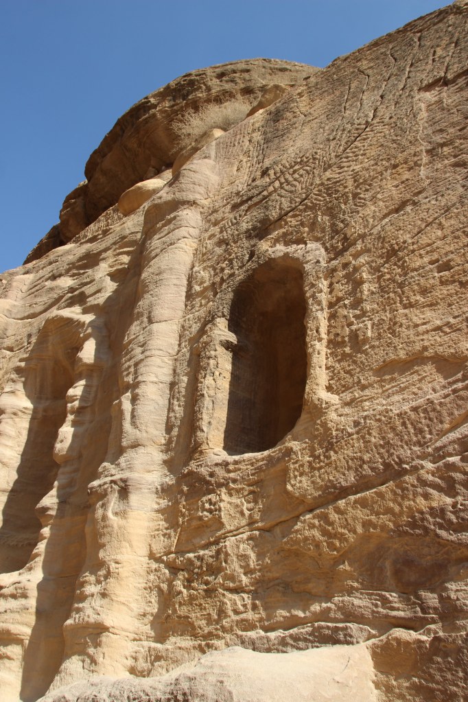 The first km or so was fairly open, with some holes in the rocks that would have originally been tombs. They created them in the rock so that when they buried bodies, they didn’t touch the sand. As you meander down, there are ornate carvings in the rocks, some tombs have fancy surrounds and some tombs are very plain – just a hole. There are plenty of bedouin people with horses, donkeys and carriages hoping for a customer to pay to be taken in.