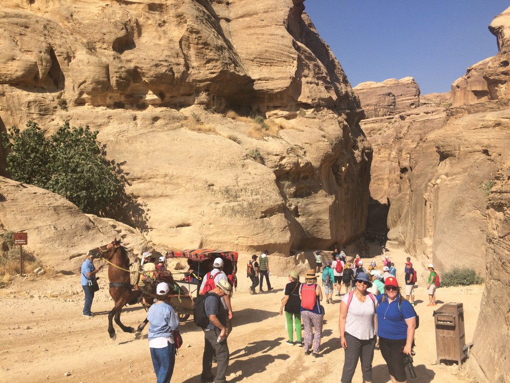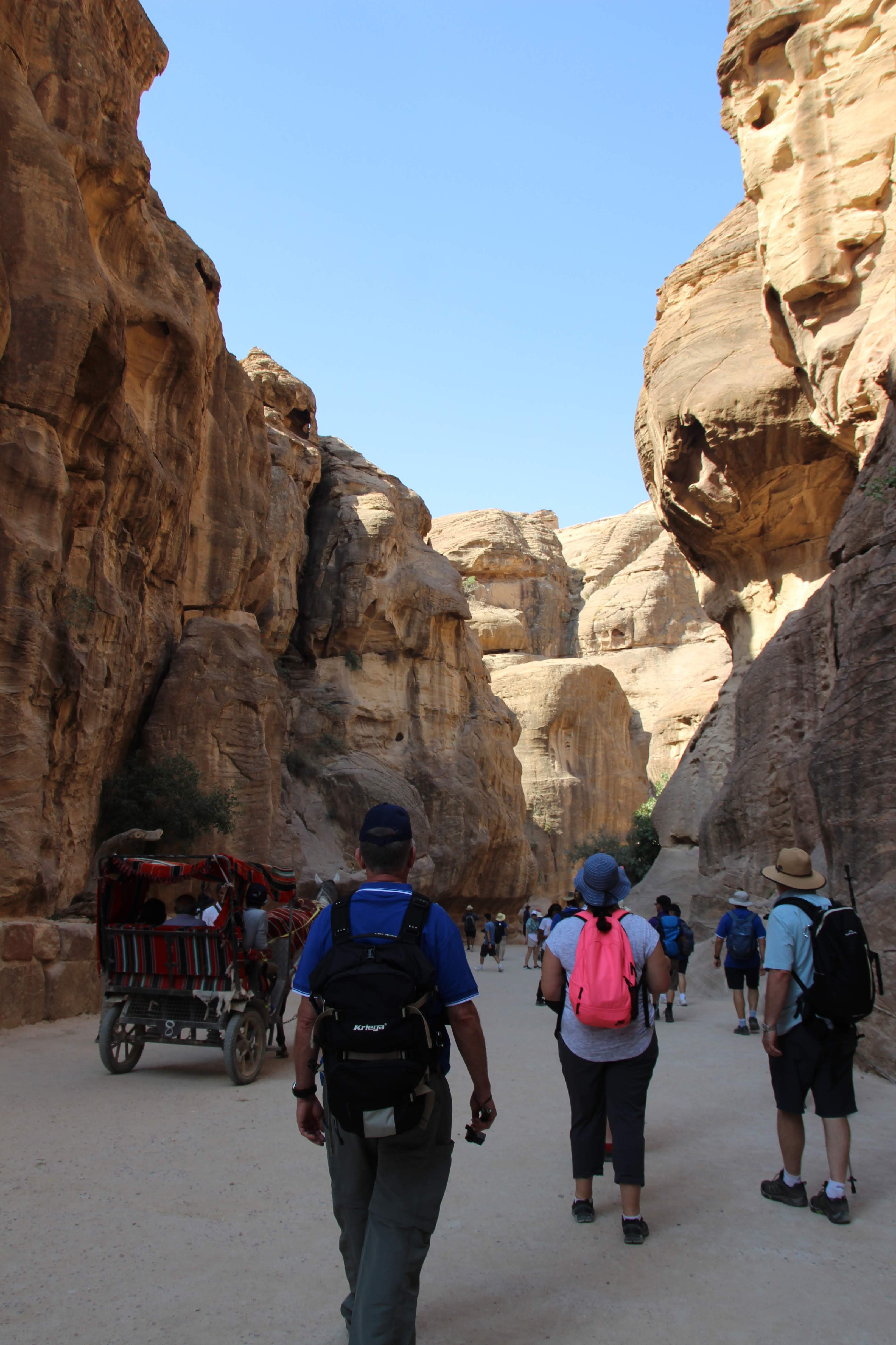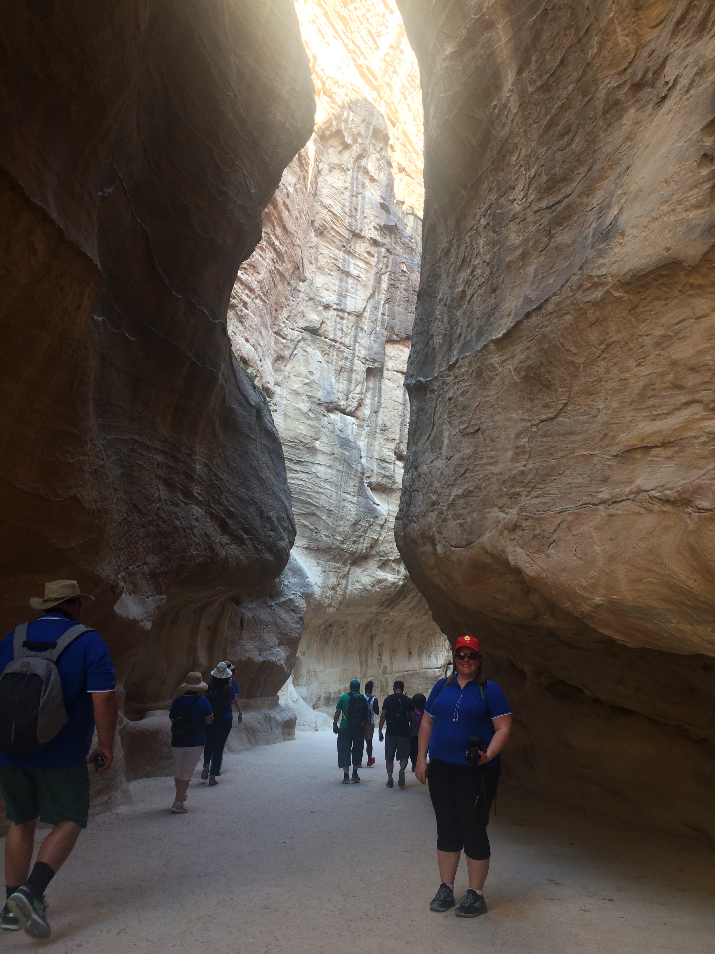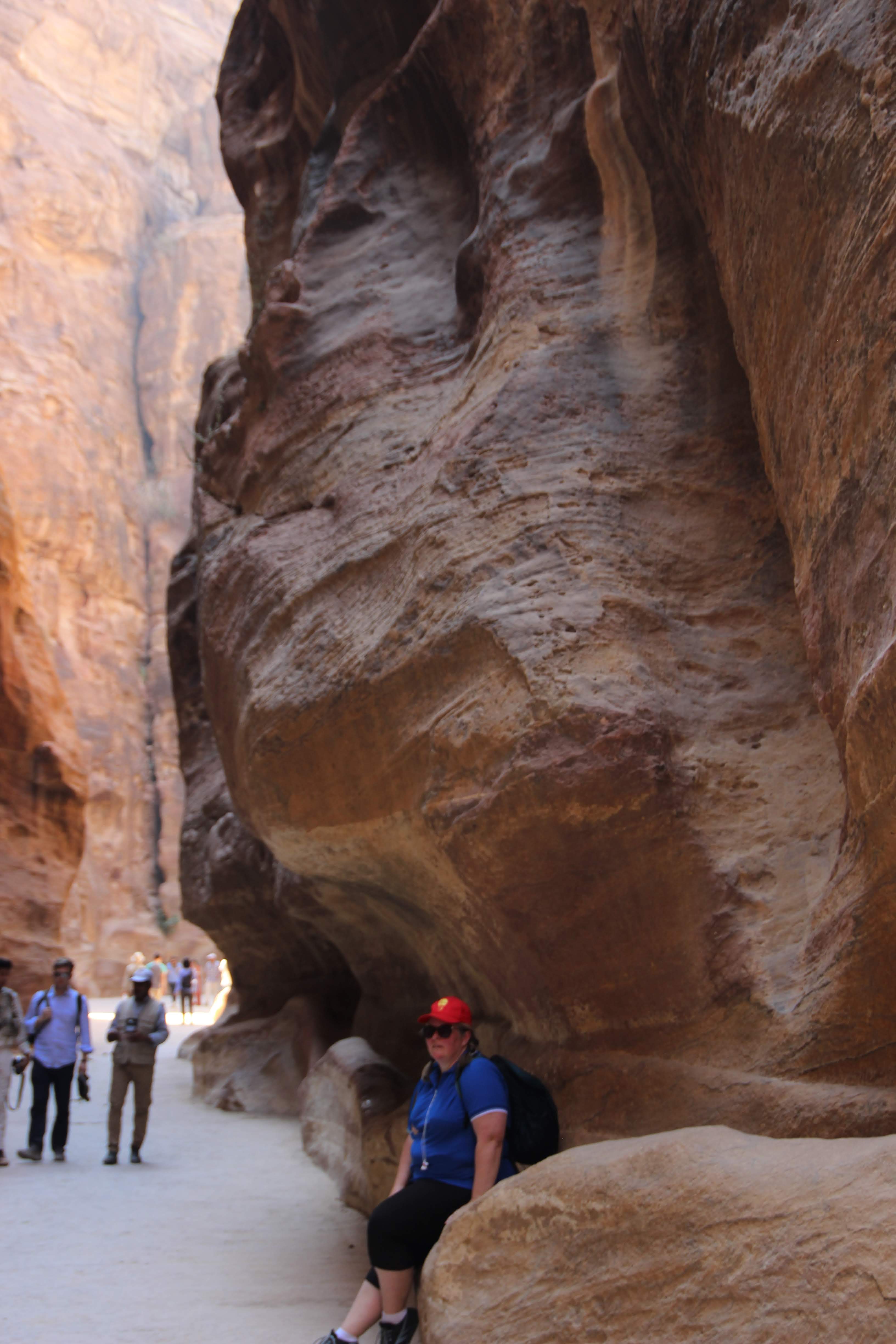 Petra – a place I have always dreamed of going. I was like a child in a lolly shop, so excited for the geology, the ancient history, the carvings, tombs, culture of the Bedouins and the sheer magnitude of the place. So this post has a bit of photo bombing in it! But I am not apologising, this place was amazing. Looking back now, it was a baptism by fire experiencing Petra on Day 2 of our study tour. The combination of the amount of walking, climbing, sweating and heat meant by the end of the day I was struggling. I have never sweated so much as I did that day – 35 degree heat, around 25,000 steps and 850 steps (1.5km) up to the Monastery. I thought I had prepared myself fitness wise for this trip…but not dealing with the heat as well!