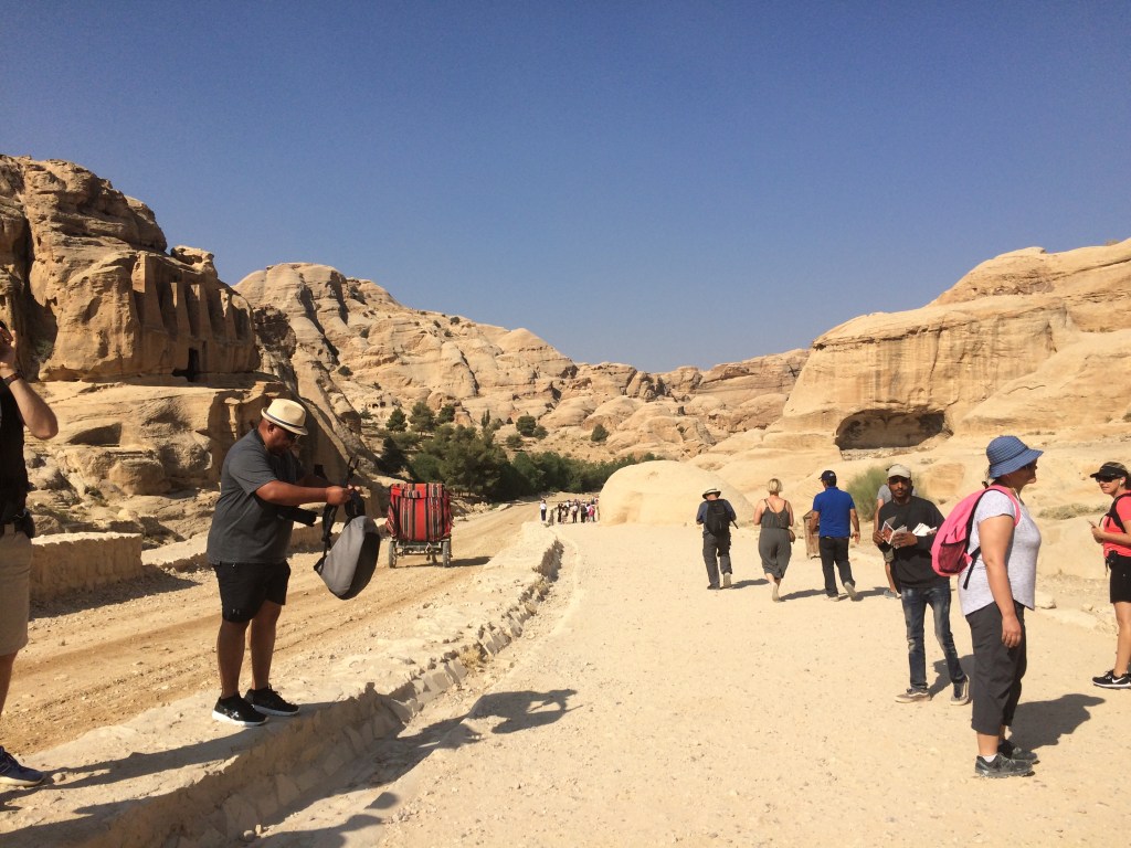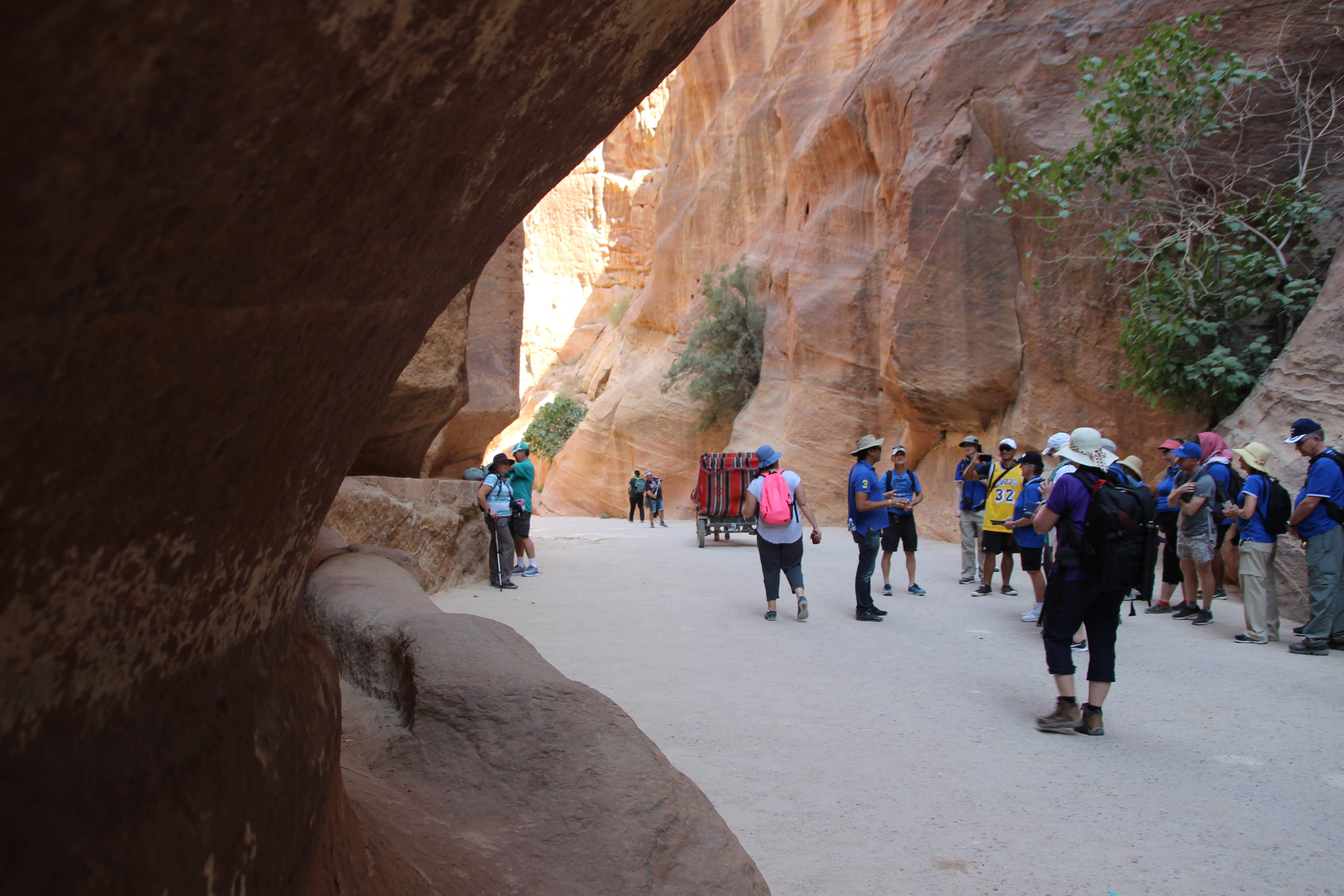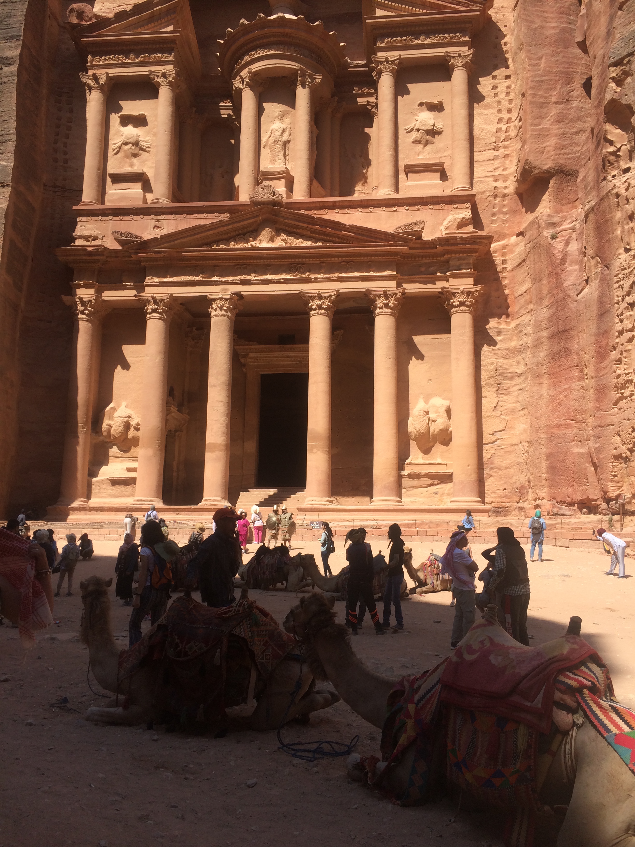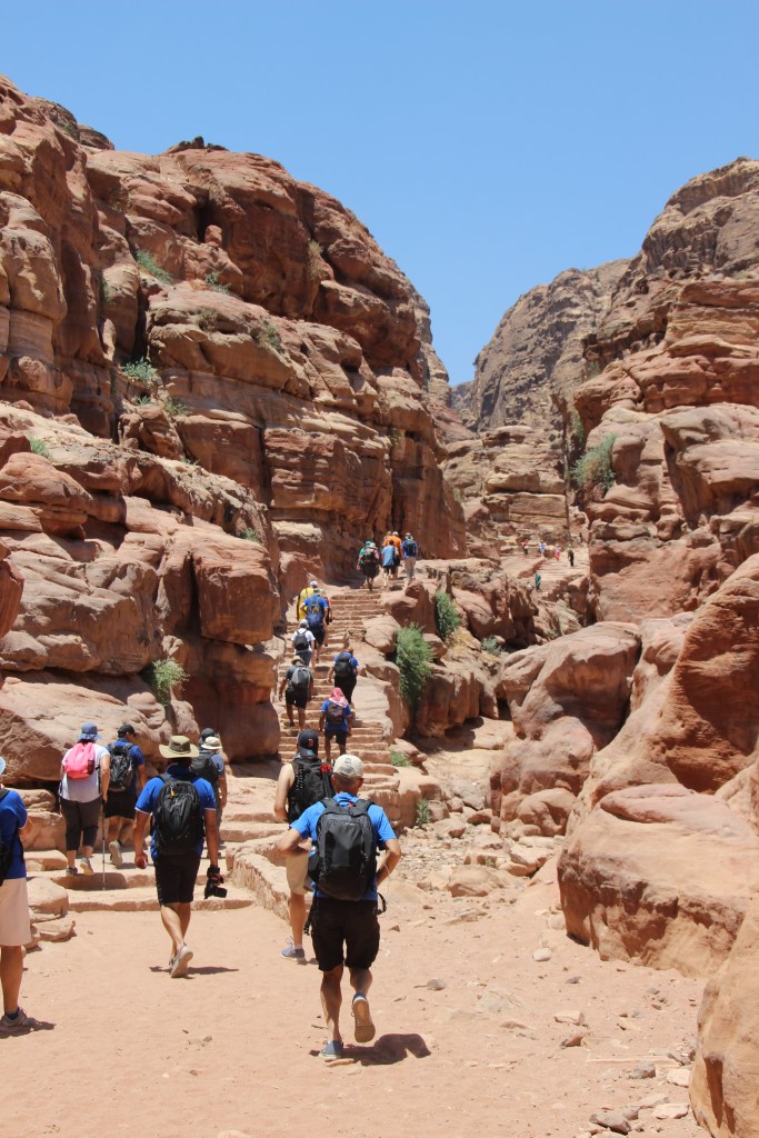 Petra – a place I have always dreamed of going. I was like a child in a lolly shop, so excited for the geology, the ancient history, the carvings, tombs, culture of the Bedouins and the sheer magnitude of the place. So this post has a bit of photo bombing in it! But I am not apologising, this place was amazing. Looking back now, it was a baptism by fire experiencing Petra on Day 2 of our study tour. The combination of the amount of walking, climbing, sweating and heat meant by the end of the day I was struggling. I have never sweated so much as I did that day – 35 degree heat, around 25,000 steps and 850 steps (1.5km) up to the Monastery. I thought I had prepared myself fitness wise for this trip…but not dealing with the heat as well!