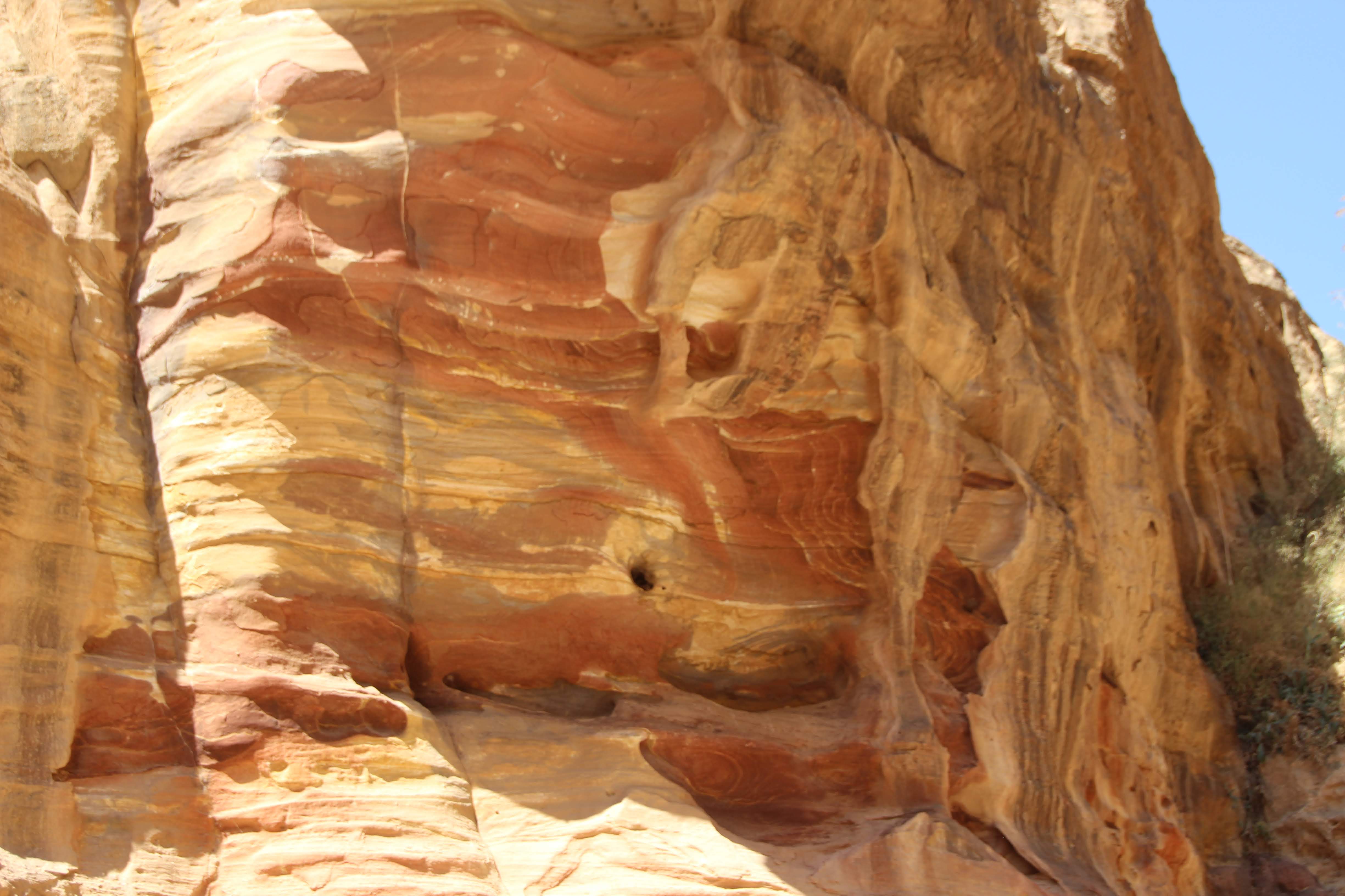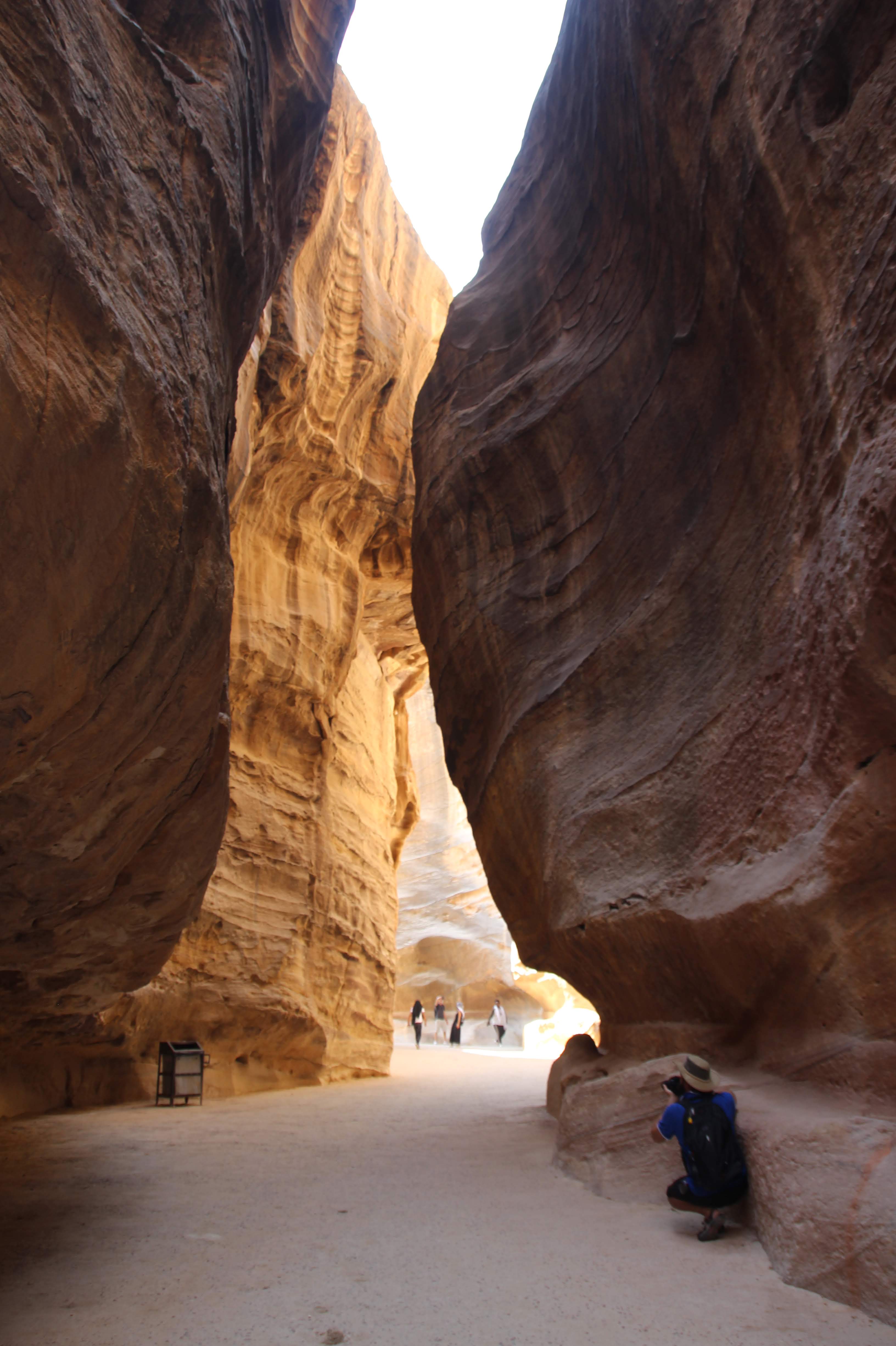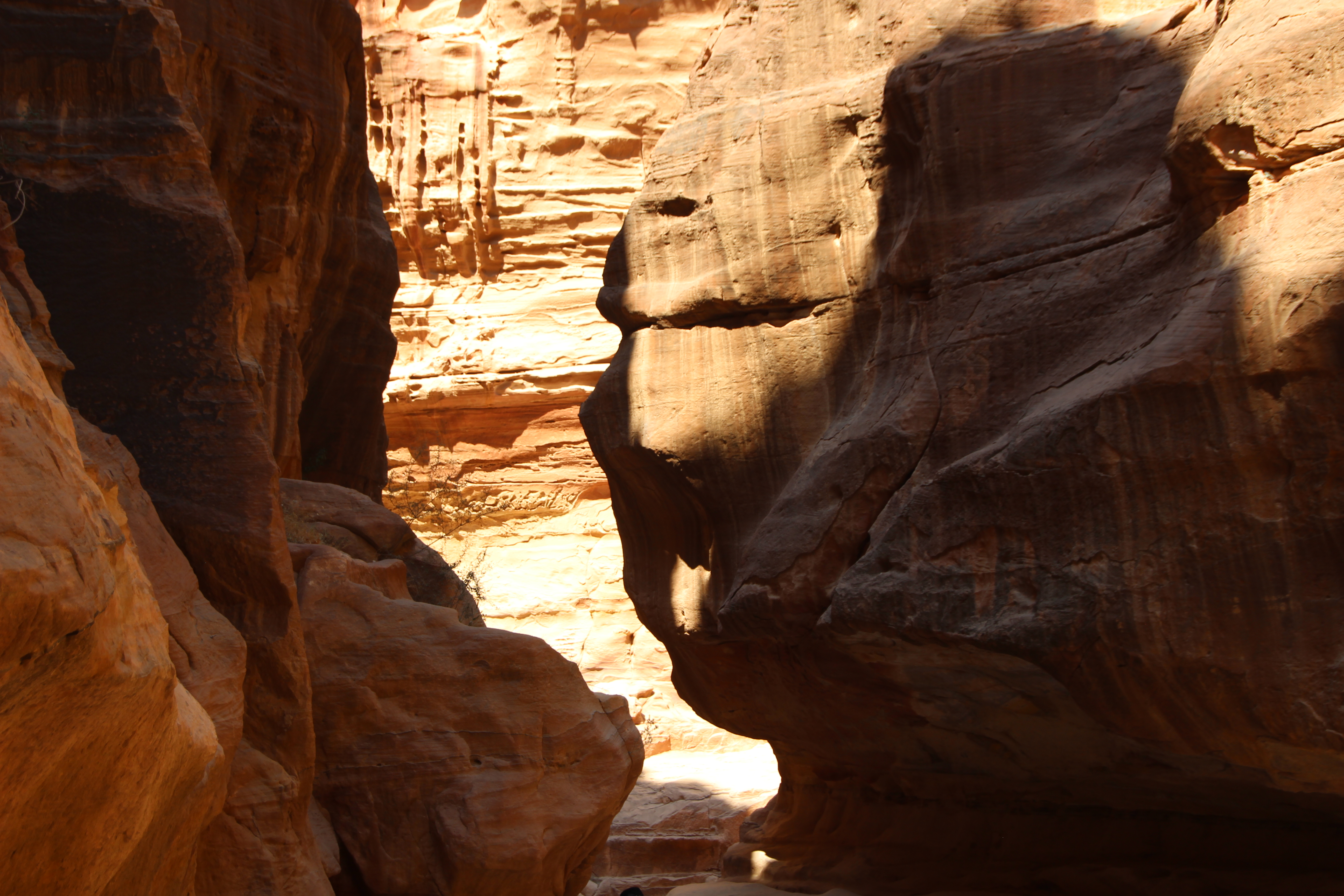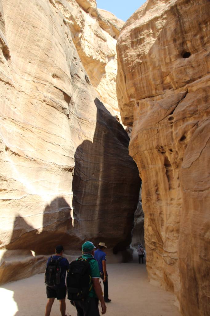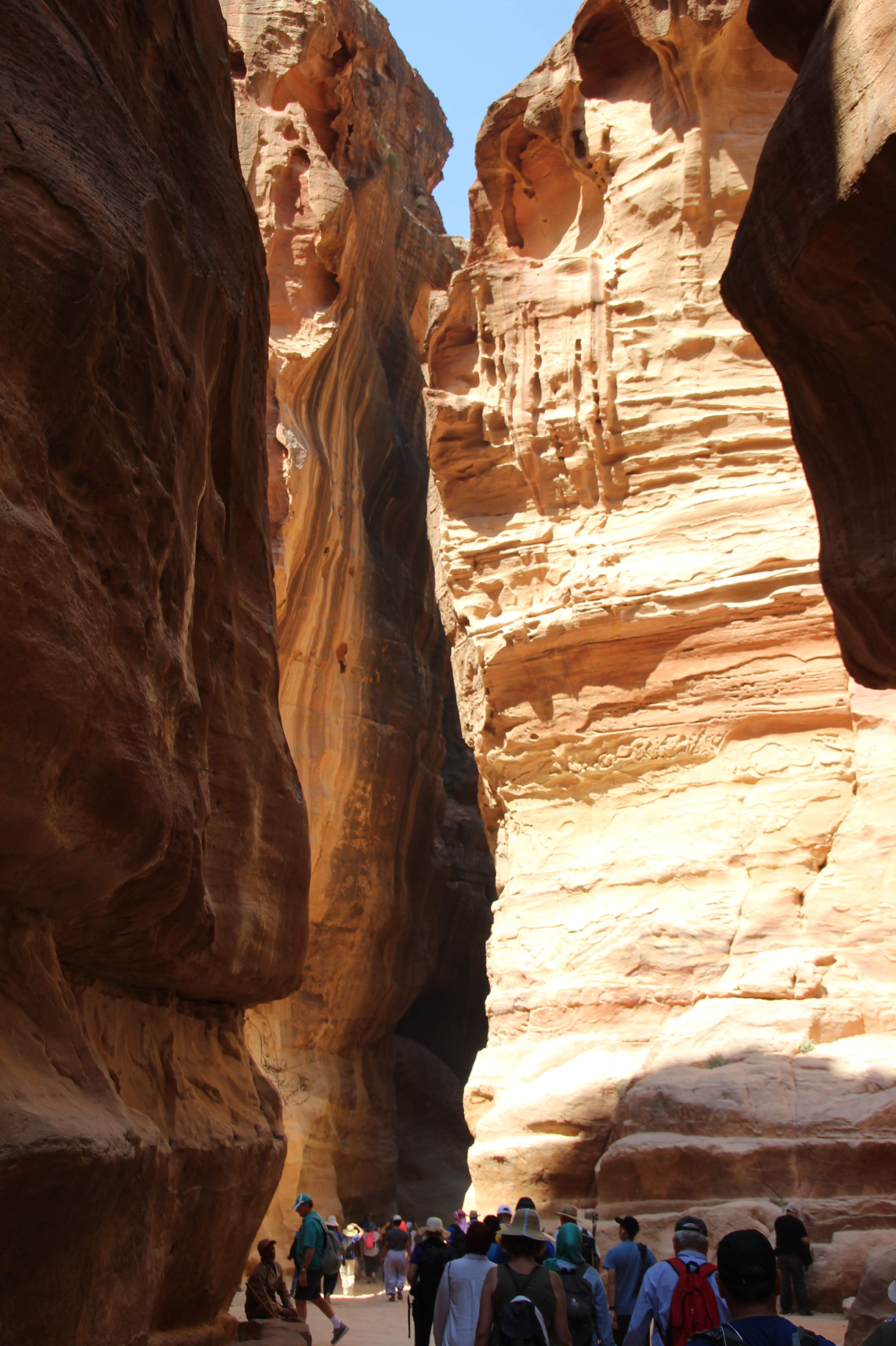 After the first km, we entered the gorge part of Petra (called the Siq). This was lovely as it provided much needed shade on a 30 deg day. This path meandered around and through, some parts wider than others, with plenty of photo opportunities along the way.