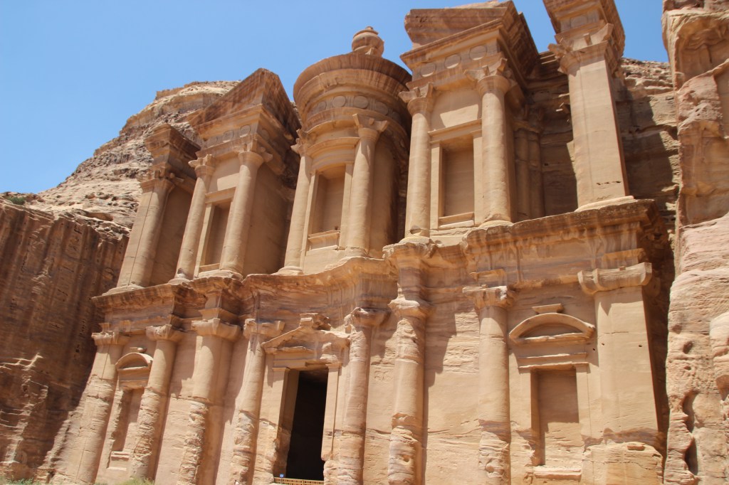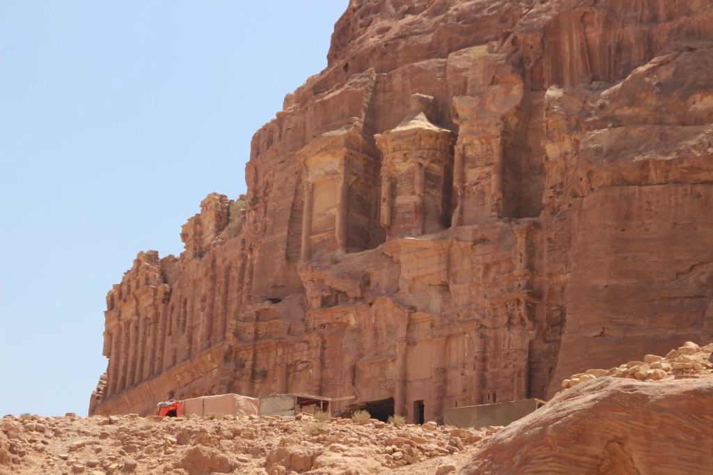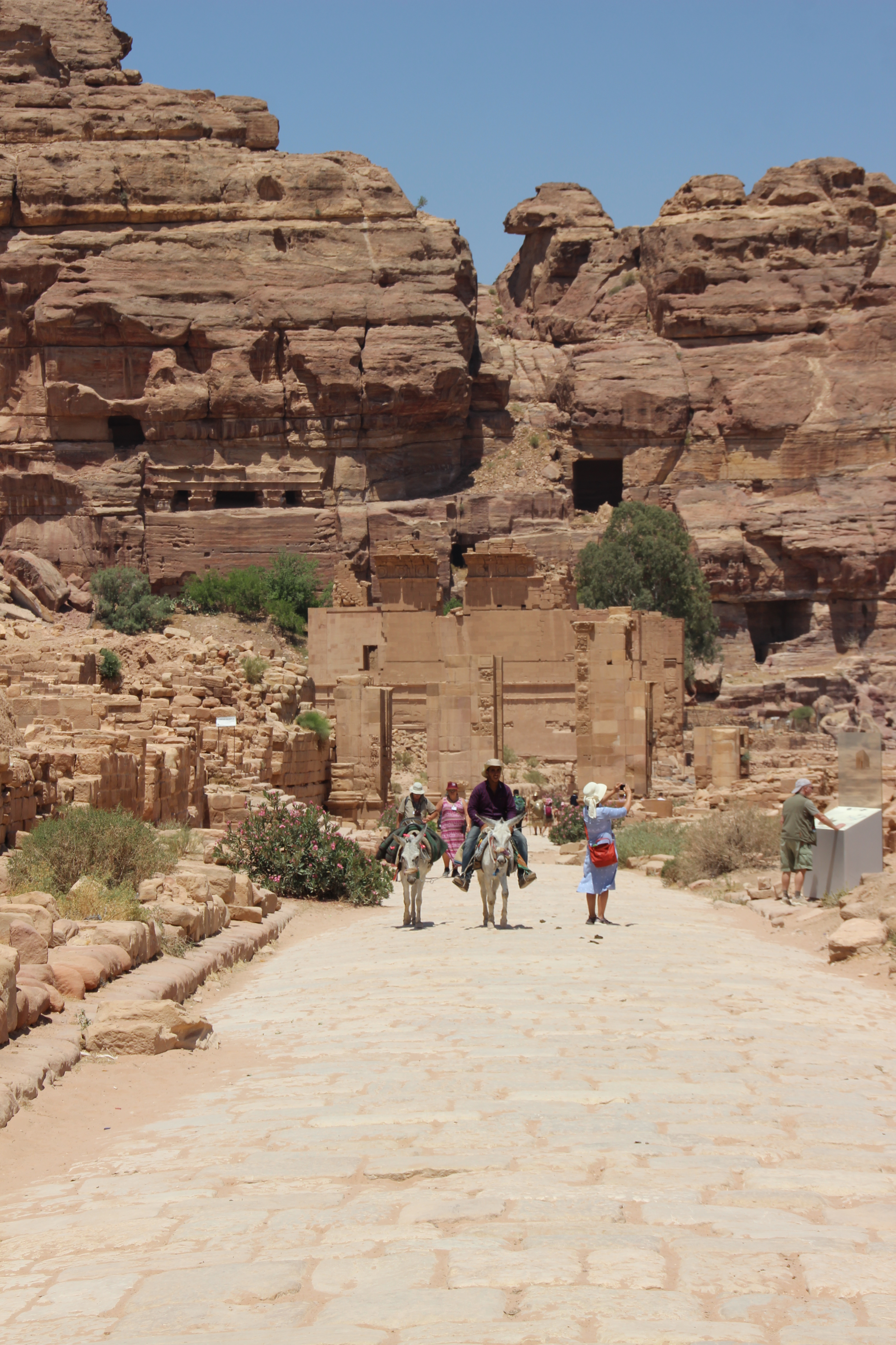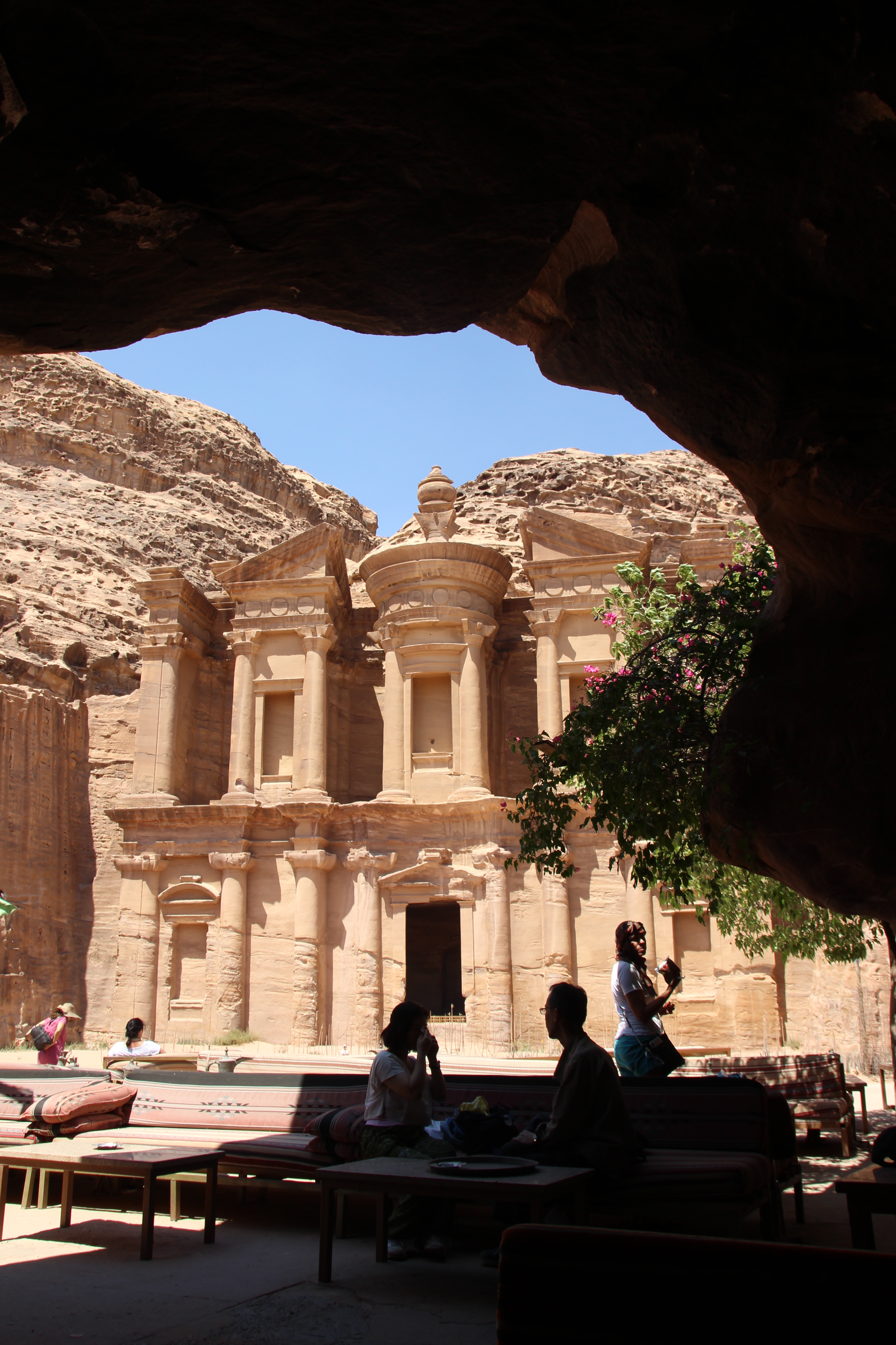 A long, puffing, hot, sweaty, complaining story later…we made it! What a sight. It was so huge, it was hard to take it all in. There in front of us was an amazing frontage, carved out of the sandstone. And just like the Treasury, it was built as a crypt – a Nabatean tomb. There was a stall at the top, selling all sorts of cold drinks and divine lovely shade. I resisted a coke for $5 US dollars, but thought about the revenue that the stall would bring in! Good on them!