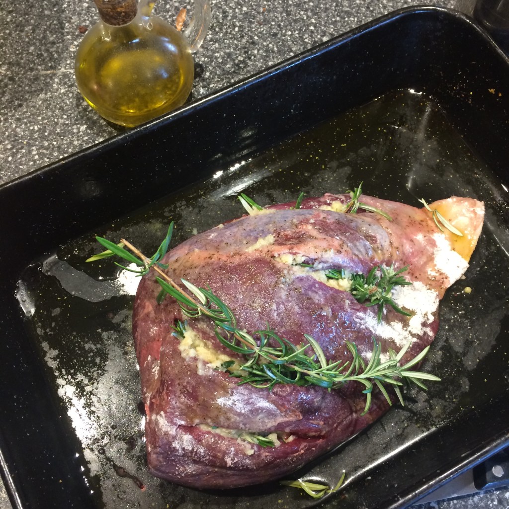 In the school holidays I like to try and cook something I haven’t cooked before. Now I have cooked many venison recipes, but never roasted a leg of venison. So today was the day to cook a long, slow leg of venison. We were given this by a neighbour who got the deer himself. It is always nice to know where your food comes from, and this one is a wild one, our neighbour caught.