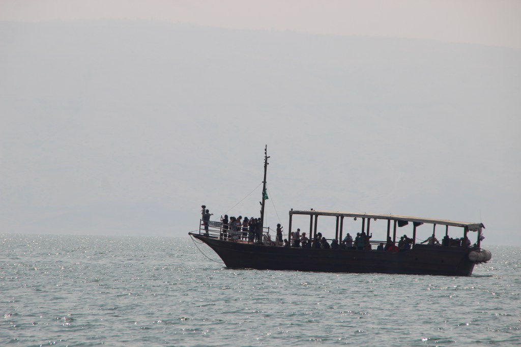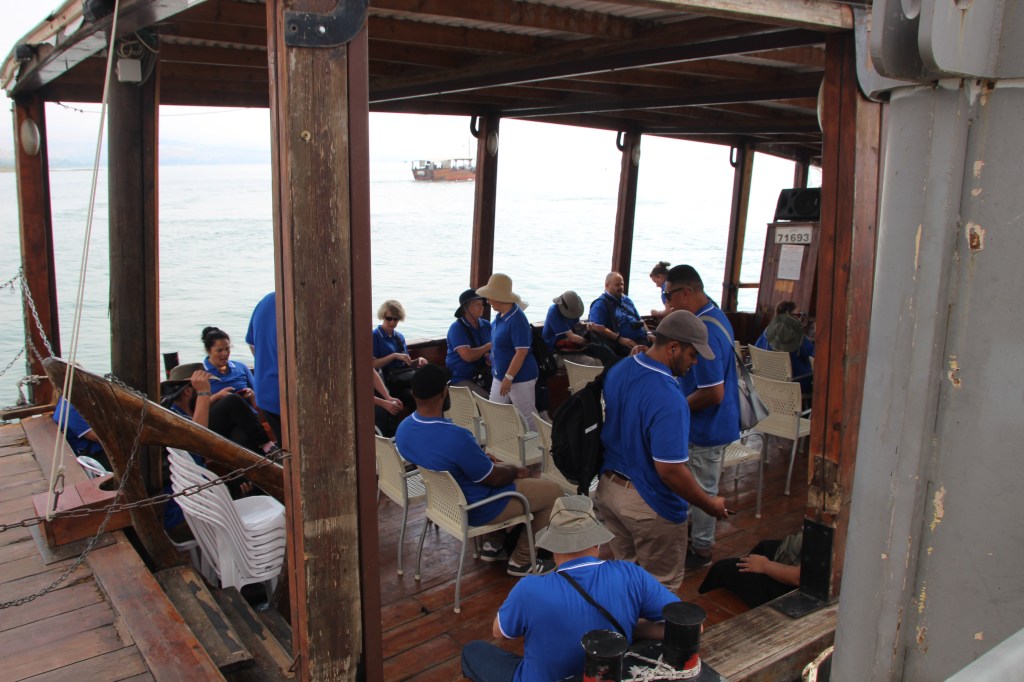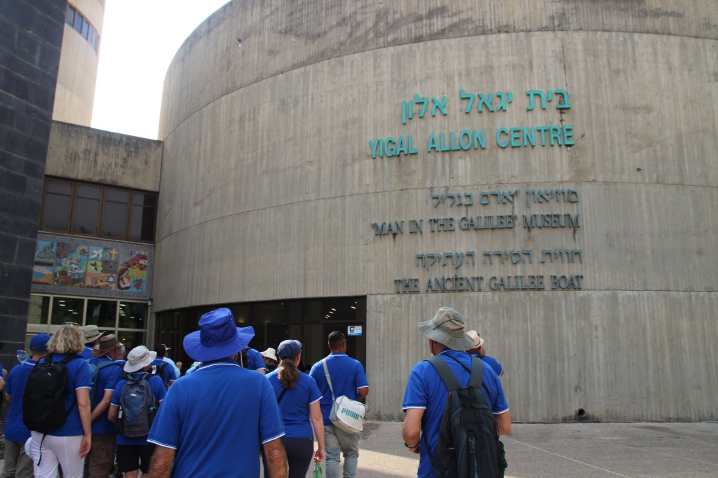 After a leisurely start to the day we wandered to a small museum which explained how they discovered a 1st Century fishing boat under the water and silt. They carefully extracted and cleaned it from the mud, using techniques to preserve their precious find. The fishing boat is on display and is most likely like one of the ones the disciples used.