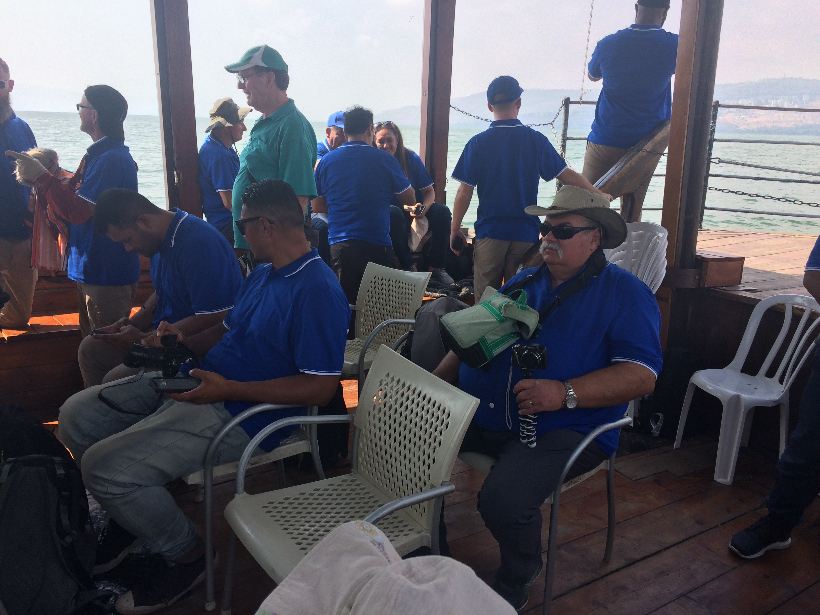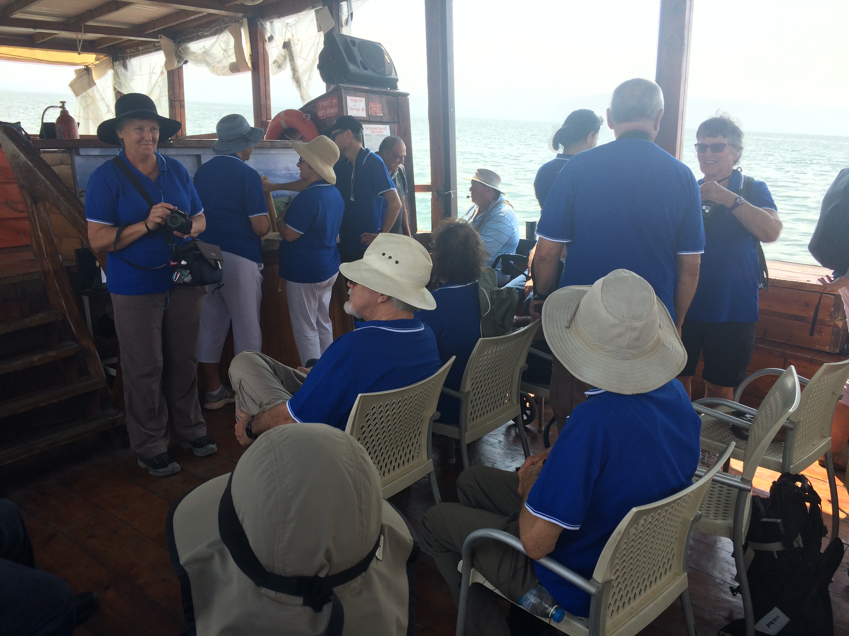We travelled out to the middle of the lake then stopped there while Dan took worship, and we read the account of Jesus calming the storm. It was a warm and muggy day, and the sea breeze on our faces was very openly greeted. It was a very moving experience, all the while I was imagining Jesus and the disciples navigating these very waters.