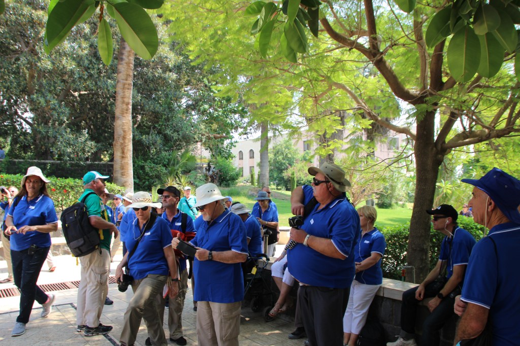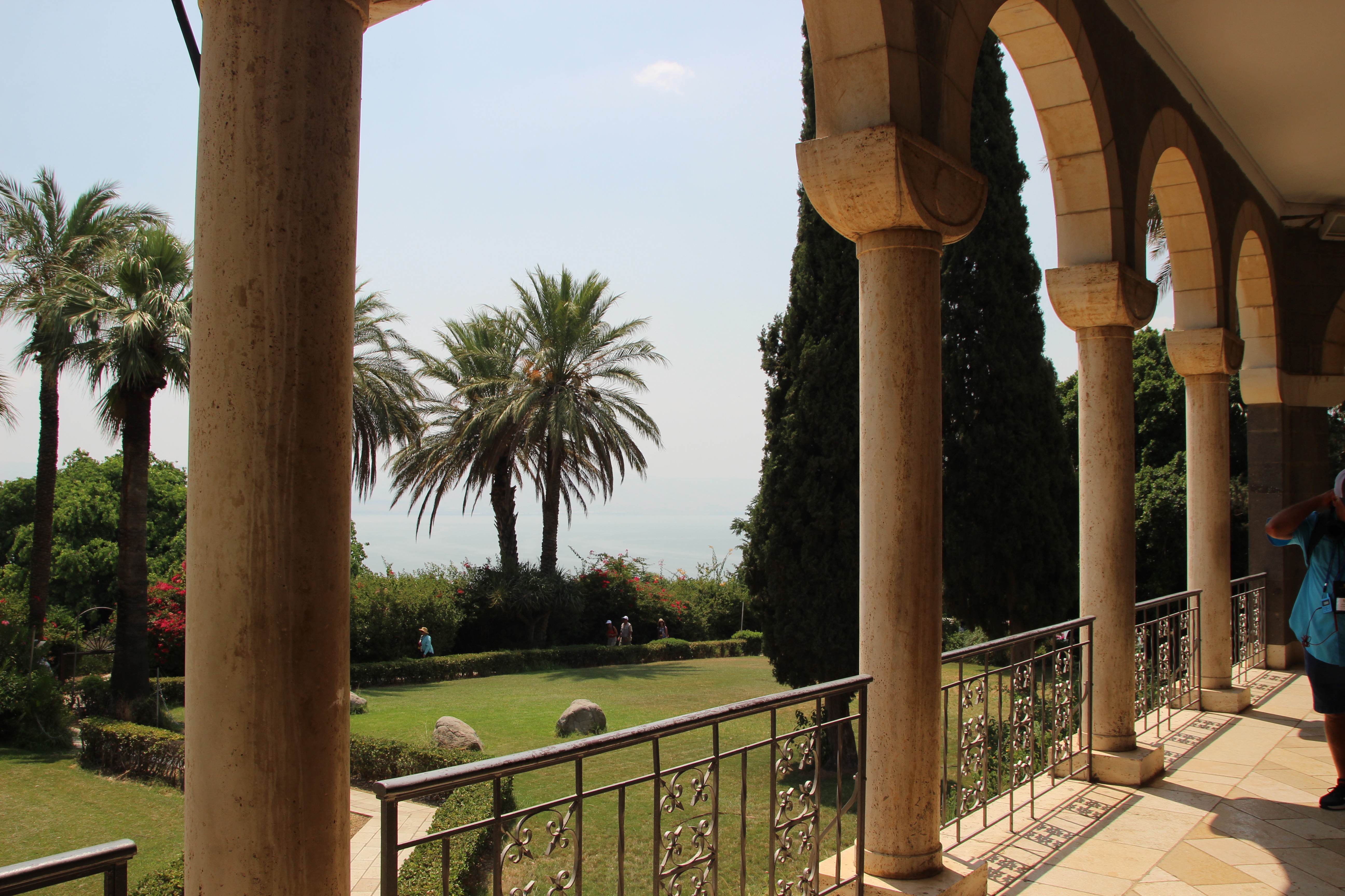 After our boat ride on the Sea of Galilee, which I did not want to end, we hopped on our bus and drove to the Mount of Beatitudes which wasn’t far. This place is set on the northwestern shores of Galilee, between Capernaum and Gennesaret (Ginosar). The top is around 58m below sea level which fascinates me! What a gorgeous place, with amazing gardens, views to the Sea of Galilee, beautiful parrots and lizards – very tranquil. Nuns look after the place now along with contracted gardeners. There is an impressive Franciscan Church built in 1937, called the “Church of the Beatitudes”.