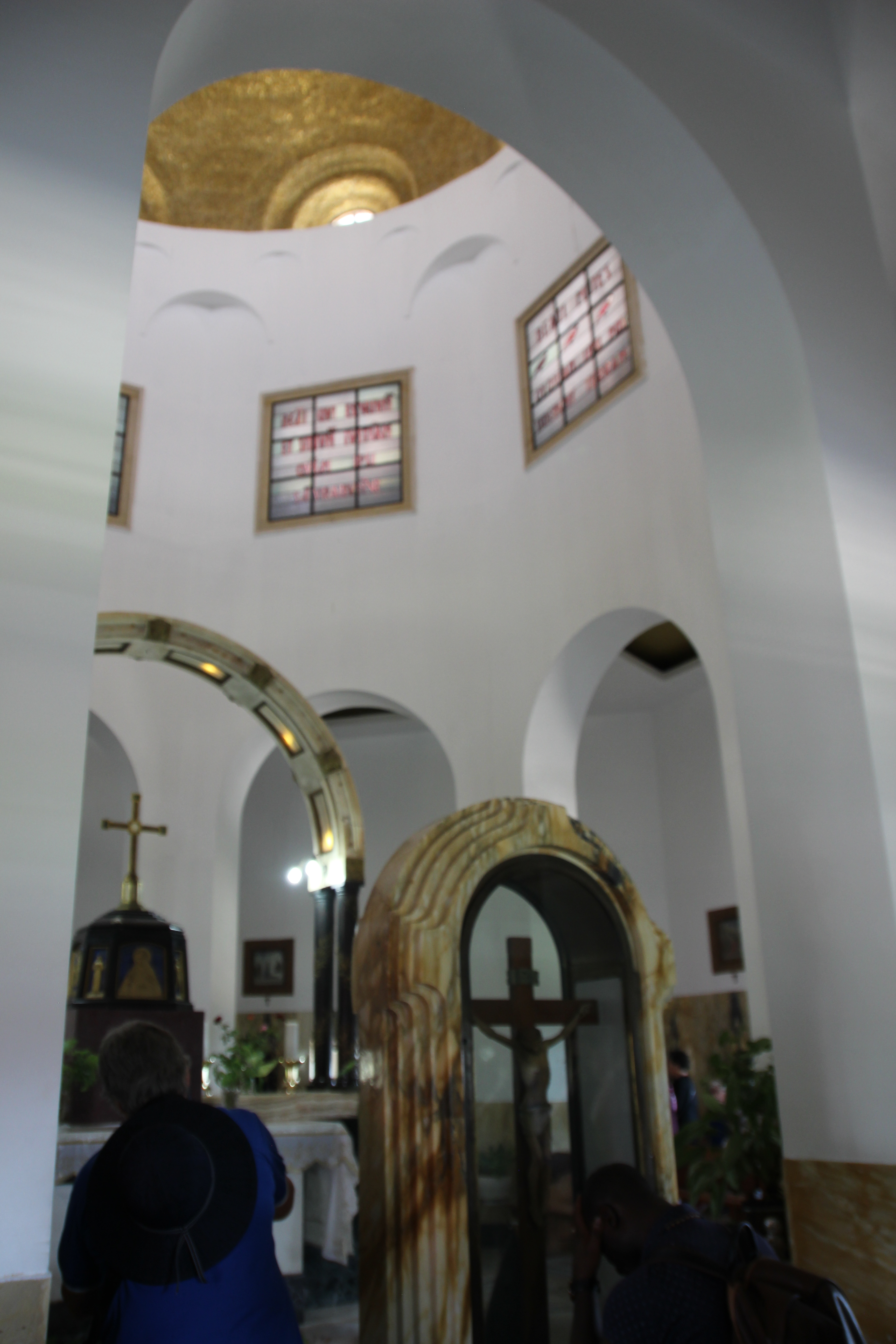 Near the Mount of Beatitudes was a place called Tabigha (Tabkha) which was the site of the feeding of the five thousand. This place where Jesus openly and miraculously meets the basic needs of the people and then shared the gospel with them. The way Jesus worked is full of lessons on how we should approach people in our circle, in our community. The church there is called the Church of the Multiplication (the full name is “The Church of the Multiplication of the loaves and fish” which is quite a mouthful so was shortened). Lunch was at a seaside restaurant, however I wasn’t feeling the best so ate light – Even though there was ‘Peter’s fish’ on the menu. I did try a thick Israeli coffee though…I downed it in two tries, and had it videoed for evidence to prove to my beloved that I did it!