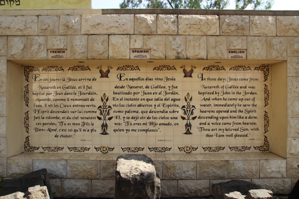After leaving Kursi, we got stuck in a traffic jam, caused by a car accident, however that gave me good time to cool down as I was feeling rather light headed with the heat. The air conditioning of the bus was magic! We drove on to the Jordan River to visit another baptismal site (the one on the Israeli side – near Bethany), and I bought a prayer shawl and some small menora candlesticks. The rams horns were pretty expensive, but very beautiful!