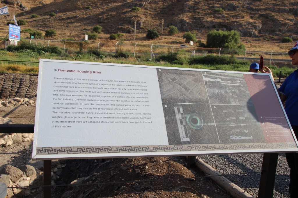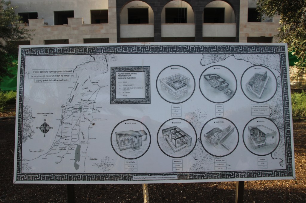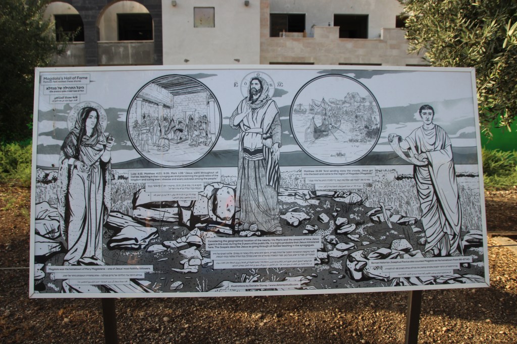 Outside are also these interesting information boards depicting Jesus’ ministry in the area, maps showing synagogues in the area in Jesus time and historical references to Magdala.