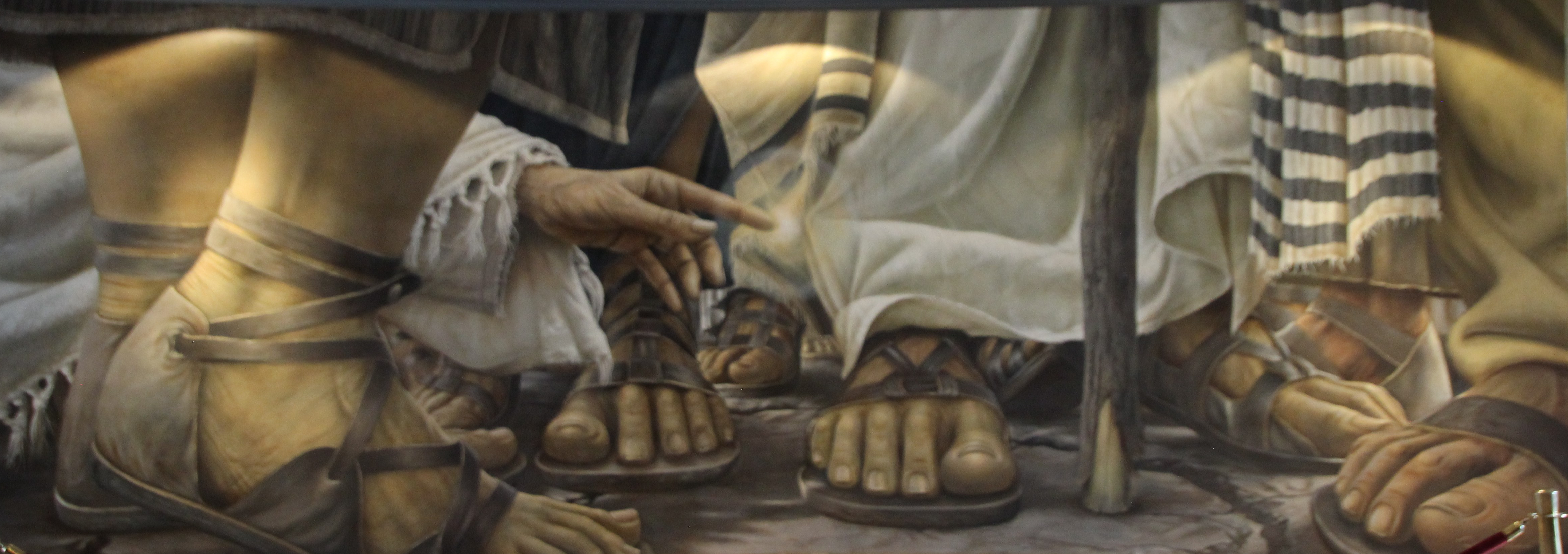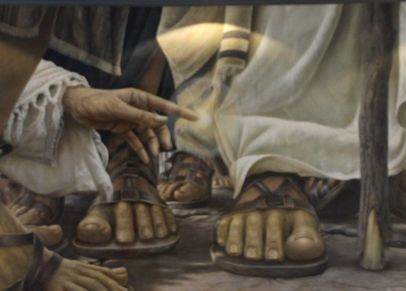 Passing through the atrium, we went down some stairs into this room called the “Chapel of the Encounter”. When we entered the room, and were face to face with this incredible painting, so moving. It is a painting of the woman who had a bleeding disease for many years, who touched Jesus garment and was healed, but the artist has focused on the point where she touched Jesus cloak. The feet in the painting were just so striking, an image that will stay in etched in my mind.