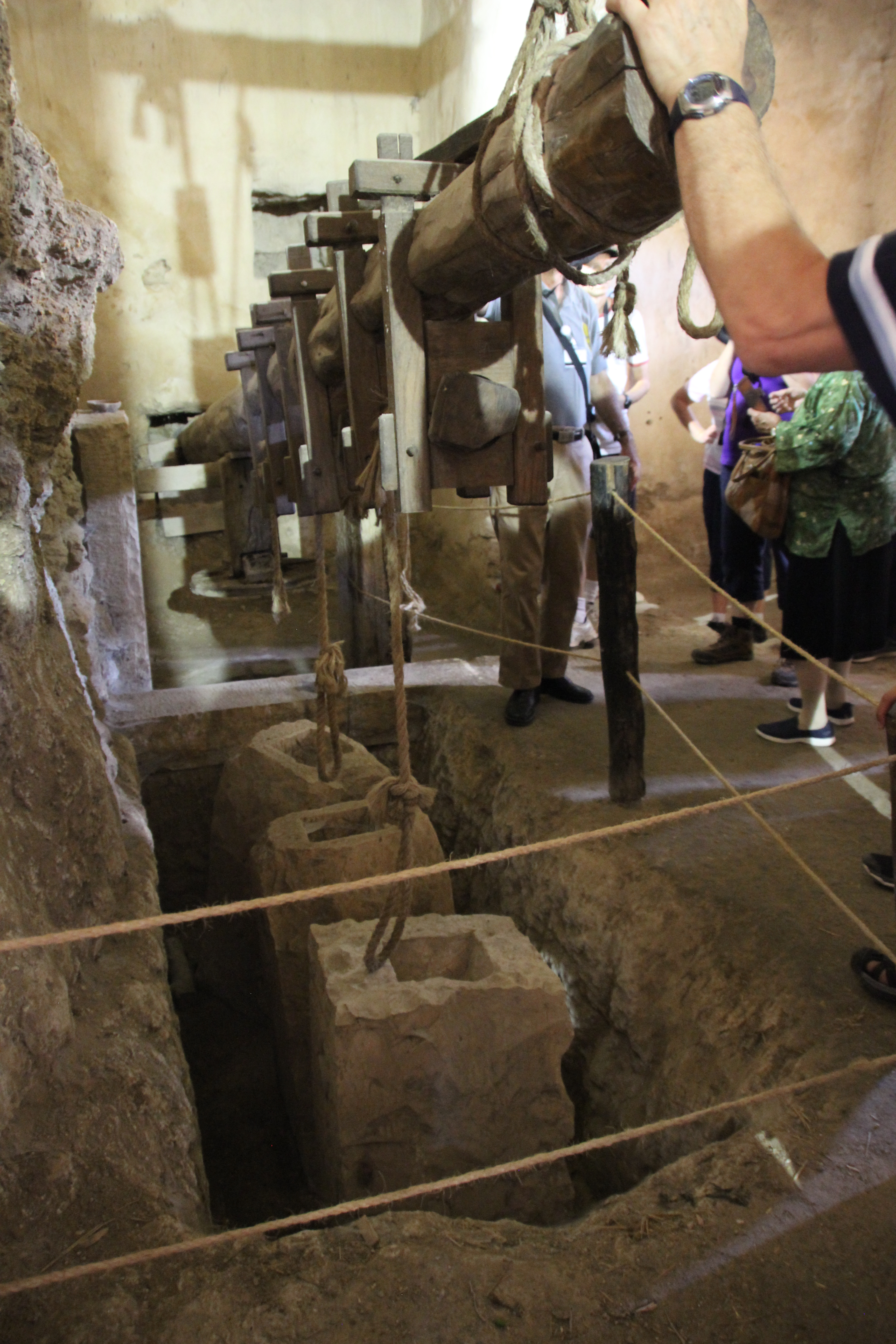 The images below are of a terraced section of a wine press where people would stamp the grapes, and the juice would collect. The mechanical wine press in the other photo, shows how they had stone weights to press the grapes. And then there was an olive press with a large stone which was turned by hand or maybe a donkey. At this press we considered how Jesus was ‘pressed’ for our sin. Without the pressing, there would be no reward from the fruit. This can also be a beautiful analogy for life – when we go through periods of pressing, there may be scars left, but there can also be beauty that comes from it. The “oil” that comes from our pressing, can be light or nourishment for someone else. The other thing to consider is when we are pressed, our Lord Jesus knows exactly what it feels like, and he is there with us to support, strengthen and walk with us through those times.
