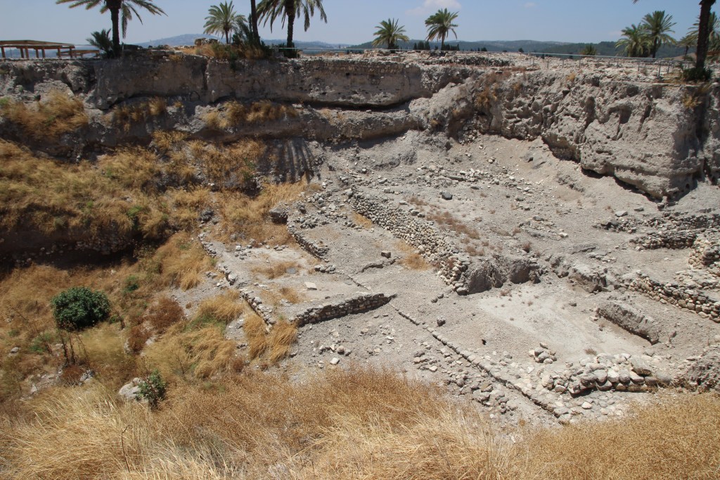 From Megiddo we could see Mount Tabor in the North (place of transfiguration of Jesus and near where the Witch of Endor lived), to the North West is Mount Carmel (Ezekiel), Mount Gilboa in the East, and in the South is Mount Ebal and Mount Gerizim. Beneath these mounts are the towns of Samaria, Shechem and Sychar (today called Nablus). Near the base of Megiddo, is the Megiddo Junction. It was the major international highway of Biblical times, said to have linked Egypt in the South with Babylon in the North. It linked empires, and was a major trade route. This is why Megiddo has been the most contested piece of land in history. See this website for interesting stories about King Thutmose III and other nations, with their endeavours to capture the place, and also some perspectives on the prophetic meaning.
