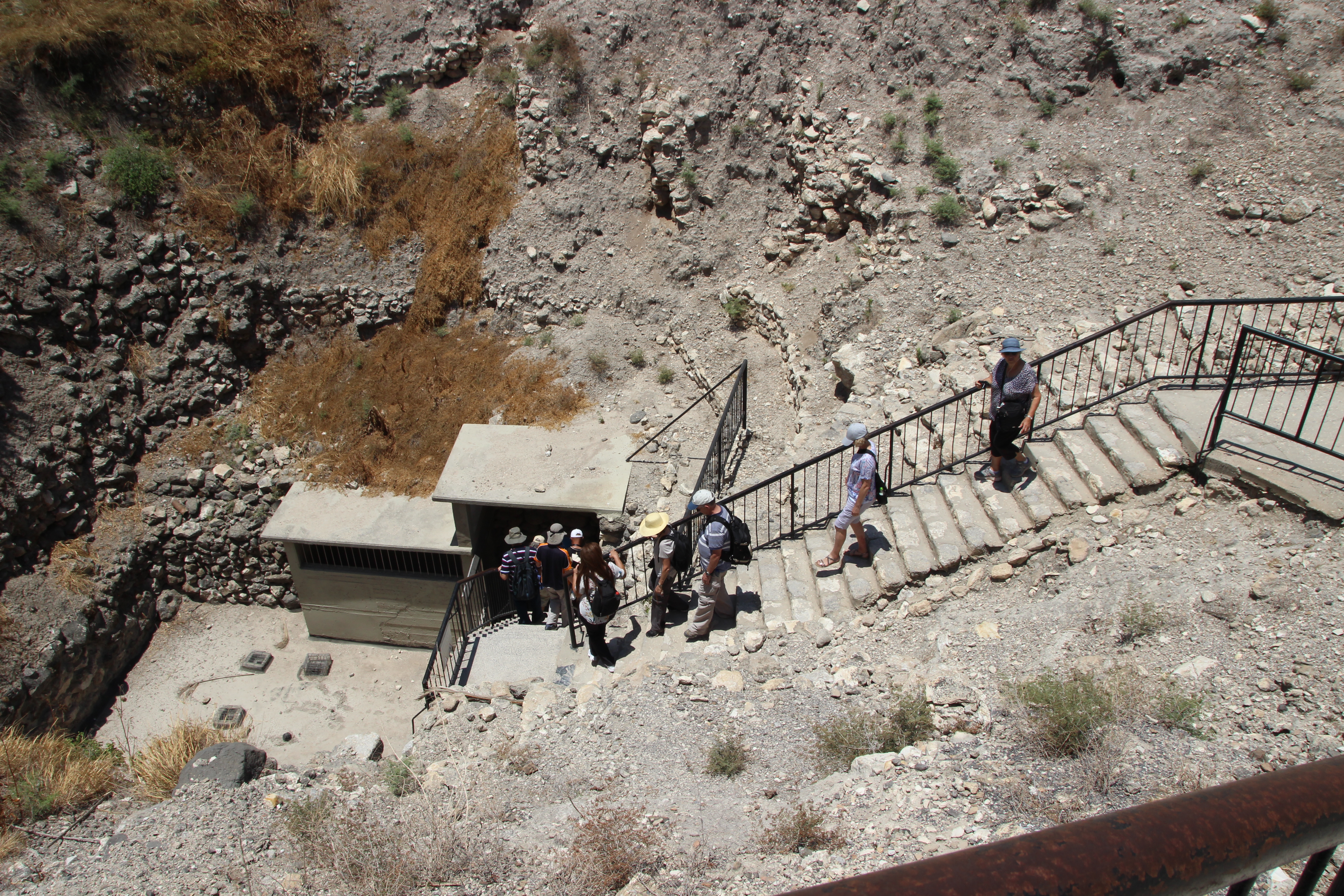 At Megiddo, they accessed water from a spring that was outside the walls. So to do that, they built a tunnel down, and through to the spring. We walked down these steep steps, then through a tunnel hand carved (yes, hand carved…very impressive workmanship!), then back out the other end. There is still very clear water at the end.