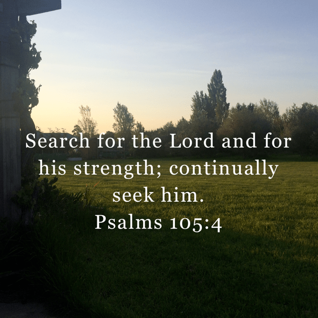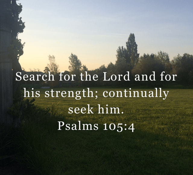 As I read Psalm 105, my eye catches verse 4. “Search for the Lord and for his strength; continually seek him.” I need to continually seek God, not just for His presence, but for His strength. Are you needing strength at the moment like I am? He is your strength, He is your strong tower. He is your hiding place, He is your refuge. Take time to seek God, He promises that everything will fall into place if we make Him a priority. Take time to breathe, take time to “be”. God is waiting.