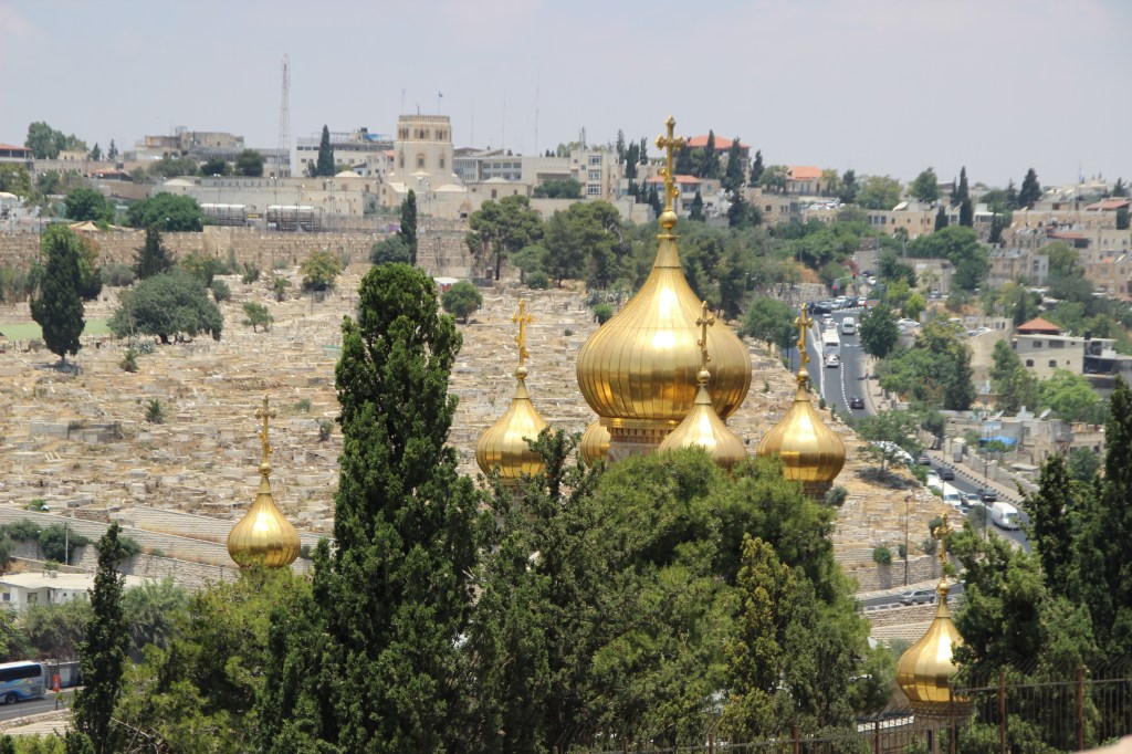 On the very top of the Mount of Olives is where scholars believe Jesus ascended to Heaven after he had risen again and appeared to many. (Acts 1:1-12). Scripture says that it was a ‘Sabbath’s day walk’ from the temple to the top, and in the 4th Century AD, this place was chosen to build a Byzantine Church (subsequently destroyed and built upon). With those two things matching, scholars agree that this is very likely to be where Jesus ascended to Heaven. The present chapel is called ‘The Chapel of the Ascension’. Other chapels in the area are the church of Pater Noster, and The Dominus Flevit Chapel (just above the Russian Church of St Mary Magdalene).