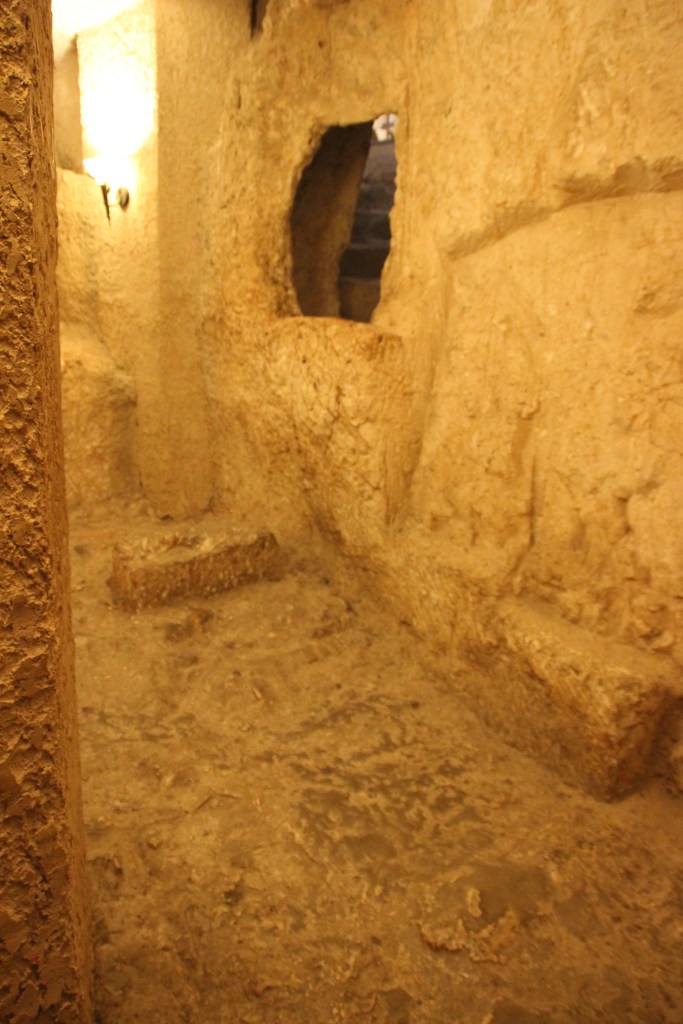 Caiaphis’ house was next. Underneath, was a dungeon which was exciting to climb down into! We all went to the very bottom, and read a psalm about God hearing us from the depth. We (of course) sang another song, and it was amazing! Our group has a beautiful range of voices and harmony. Debbie up on the ground could hear us! The dungeon would have been a fairly accurate location as to where they put Jesus for the night, to await trial. I hadn’t considered before, that Jesus probably spent a few hours in the dungeon over night, and the thought was profound. My Lord in a dungeon, a dark, cold dungeon. Heaven forbid. But it didn’t – it was part of the plan, my Lord went through everything for me, for us.