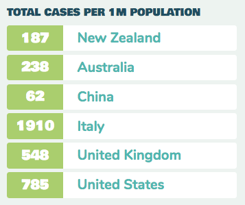 In New Zealand we are now 10 days into our country-wide lockdown. I feel the need to reflect here in words to remember an astonishingly strange time we are living in. As I type, NZ has 950 cases, and the good thing is, we are not spiking exponentially in new cases. The last few days the rate of new cases has been more linear – around 70-80 new cases per day, so maybe…just maybe the Government’s decision to act quickly and hard is going to pay off. We have had 1 death, and currently 10 are in hospital with 1 in ICU.