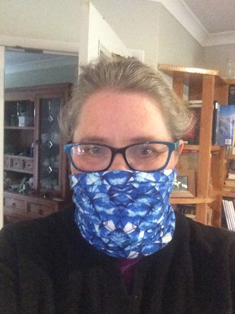 This tramping neck scarf came in handy…even if research is showing that fabric may not stop the pesky virus, at least it will stop coughs and sneezes. Maybe I just feel more secure like cuddling a teddy bear at night. (My daughter is pictured above before the wearing of masks became more of a thing)