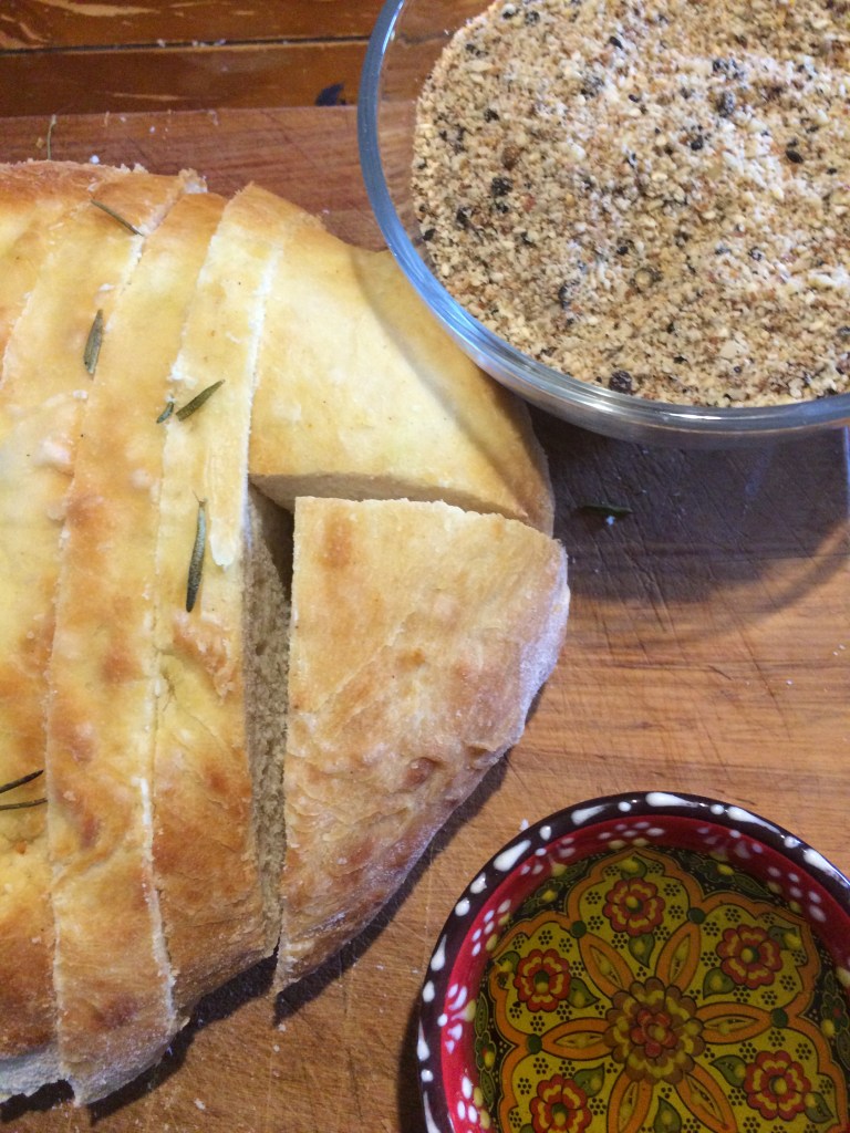 A couple of days ago, Elizabeth made focaccia bread, and dukkah from scratch. It was magnificent with our own olive oil, and the beautiful dish all the way from Jordan…maintaining authenticity of course!