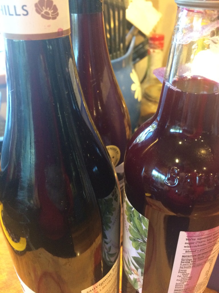 Yesterday we cooked up a tub full of grapes from my dad into juice, and today I bottled it. We had some with our dinner with bubbles (carbonated water), and although it was still warm it was delicious!