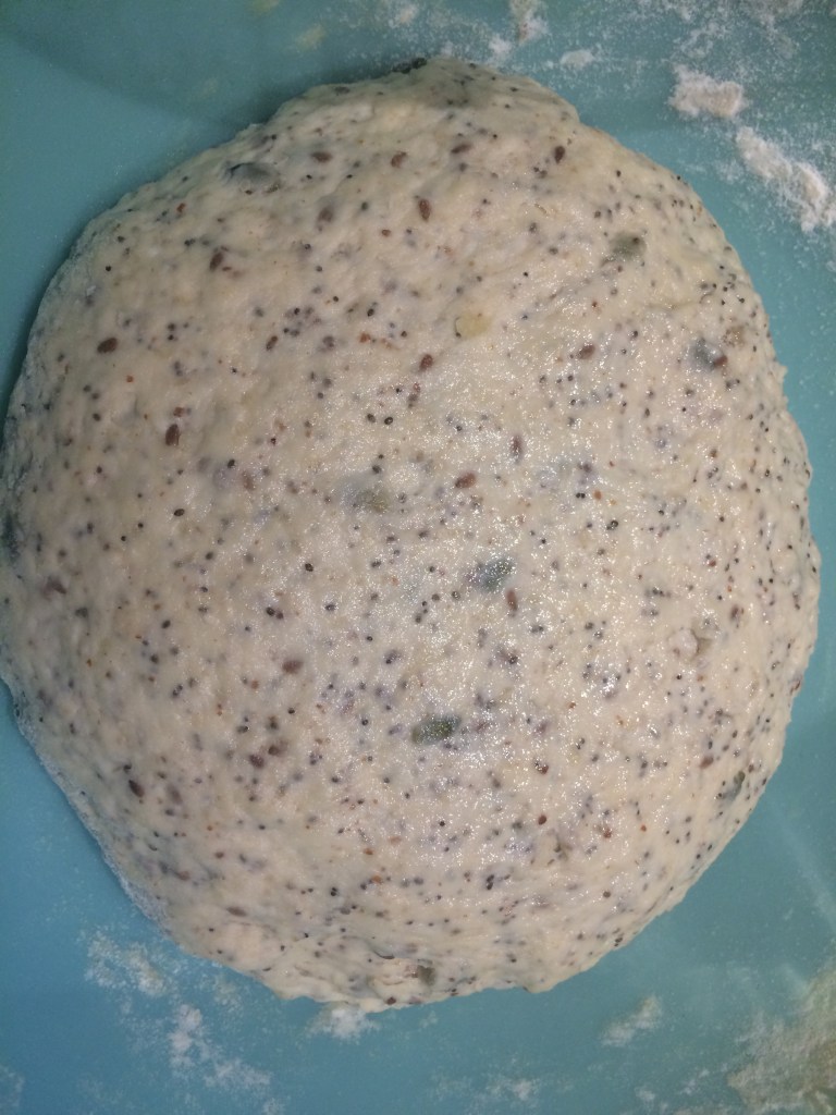 So a couple of days later, here I am making hot cross buns again, but this time I did a half batch just in case my little yeast friends didn’t cooperate. I cut up the ball saved from the other day, and added it to my dry ingredients, then added the warm milk and whisked egg. I mixed it all up, and then did a workout kneading the dough for a good 5 or more minutes. Now it is in a warm place, and I am hoping it will rise. The dough feels right, so we will see if we can breathe life into it!
