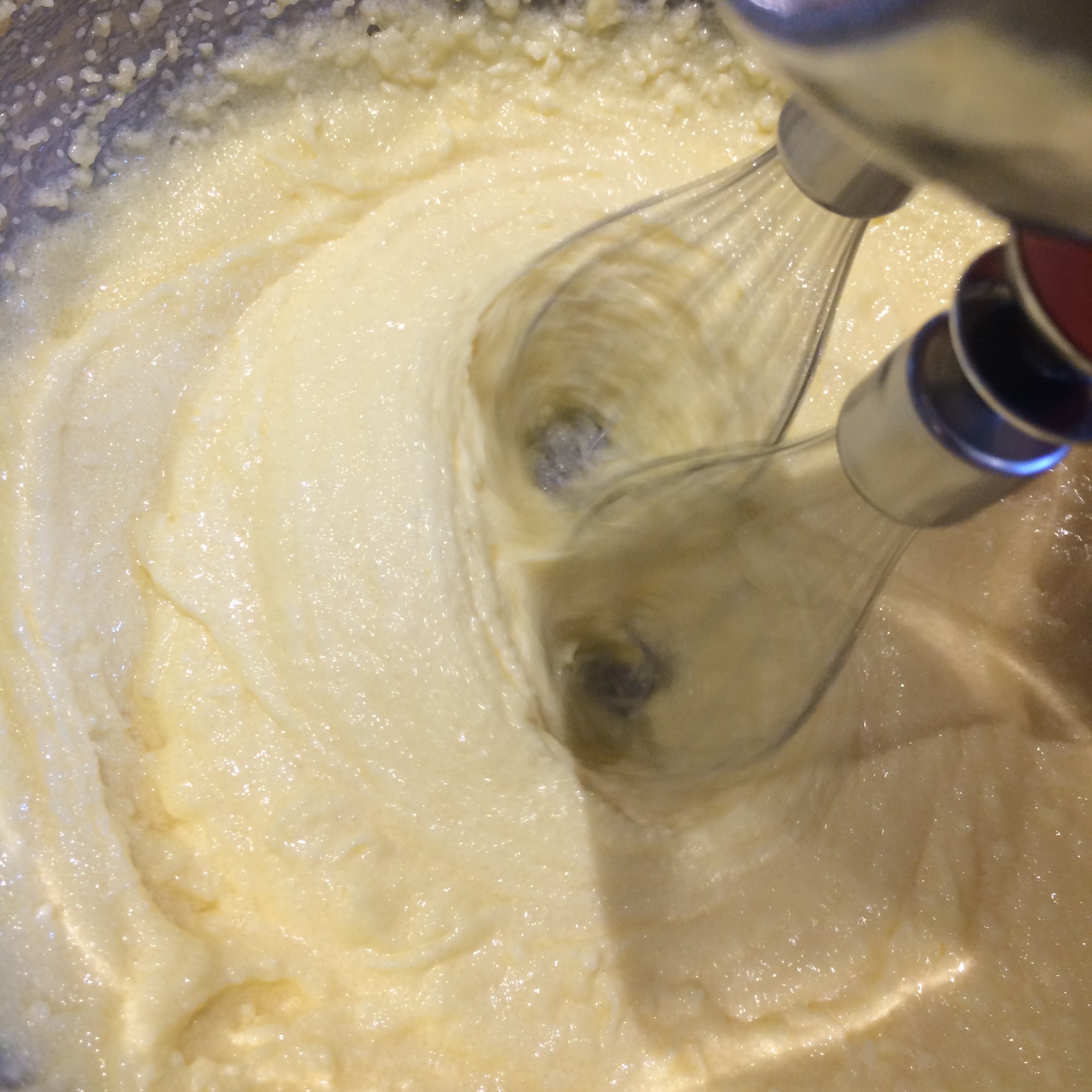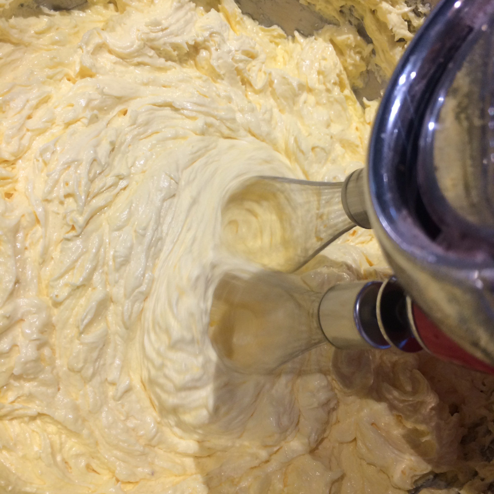 Weigh out eggs in a separate bowl. Soften butter, and cream in the sugar, pour in eggs one at a time and beat well with a beater. Add essences, and pinch of salt. When ready to make the cake, add flour to fruit mixture and stir well.