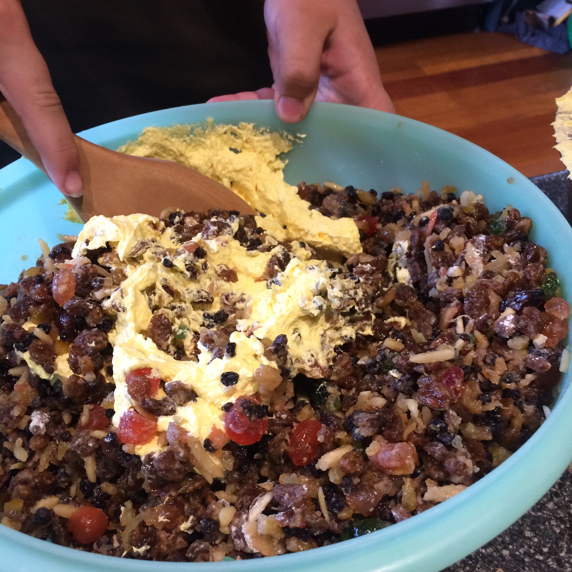 The end product was amazing! The cake was moist, rich and dark, and would be amazing if I had made it weeks ago and let it sit in an airtight container. I will wrap the rest up, and it will have a couple of weeks to rest at least, before Christmas.