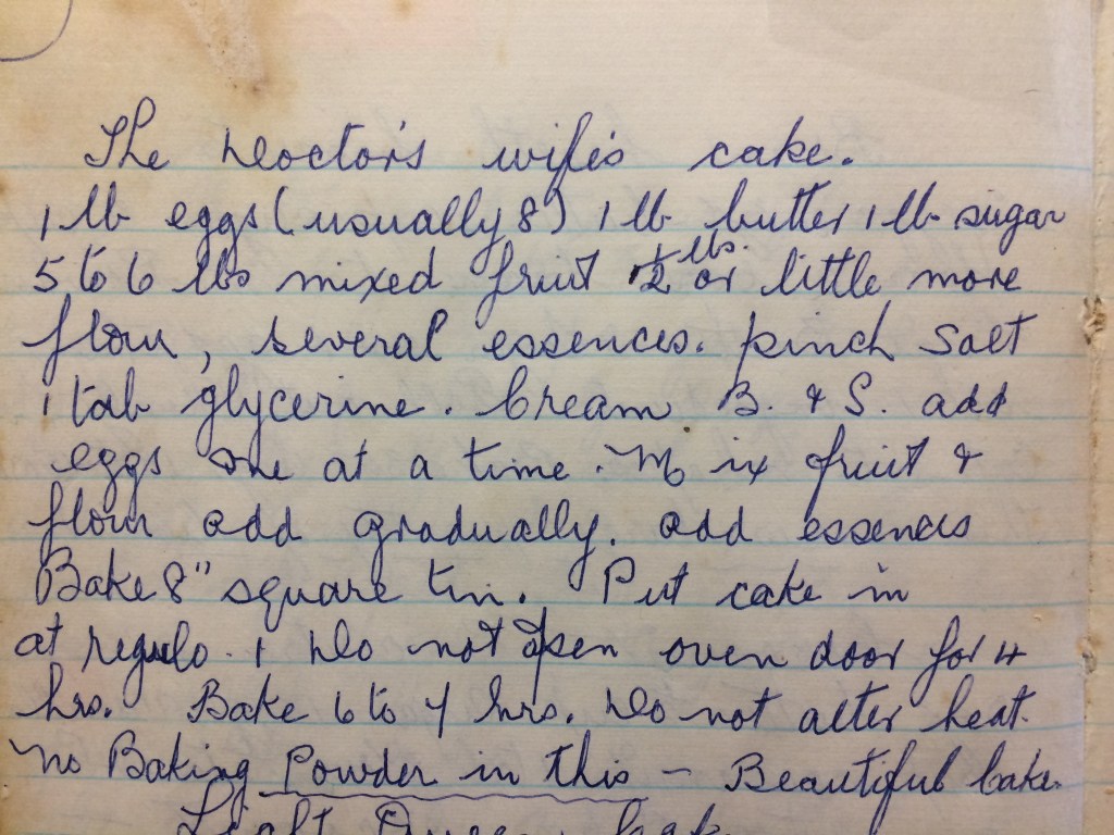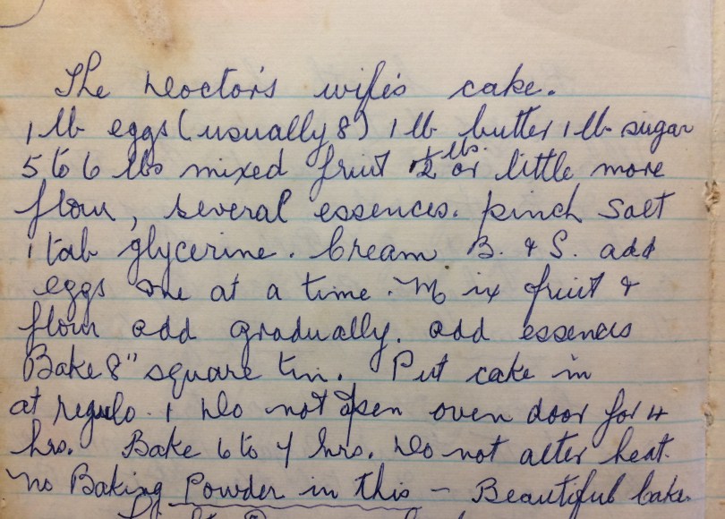 Over the last few years we have enjoyed one particular Christmas cake recipe. And it has become a family favourite. The title is simply “The Doctor’s Wife’s Christmas Cake”. It is circled in the index, and at the end of the recipe is has “beautiful cake”. And we agree.