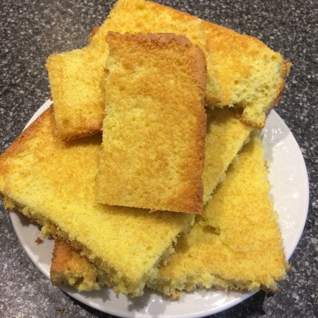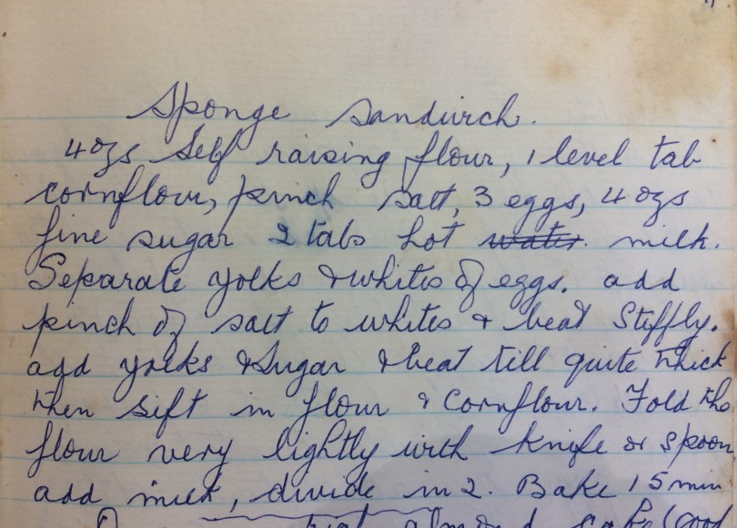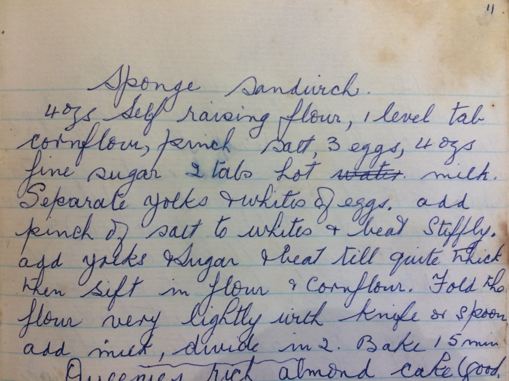 So back to cooking…in preparation to making this trifle, and since we have an abundance of eggs, I found a simple ‘sponge sandwich’ recipe from Adrian’s grandmother’s recipe book. It worked a treat, and has been put in an airtight container, ready to use to assemble the trifle.