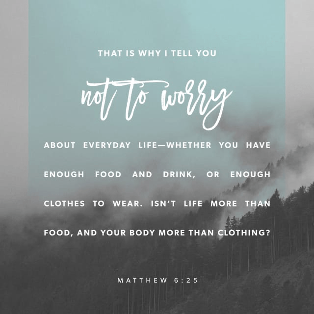 Worry, anxiety, stress…these things can plague us so often. Jesus had some wise advice here in Matthew chapter 6. Advice that I find I have to be constantly reminded of.